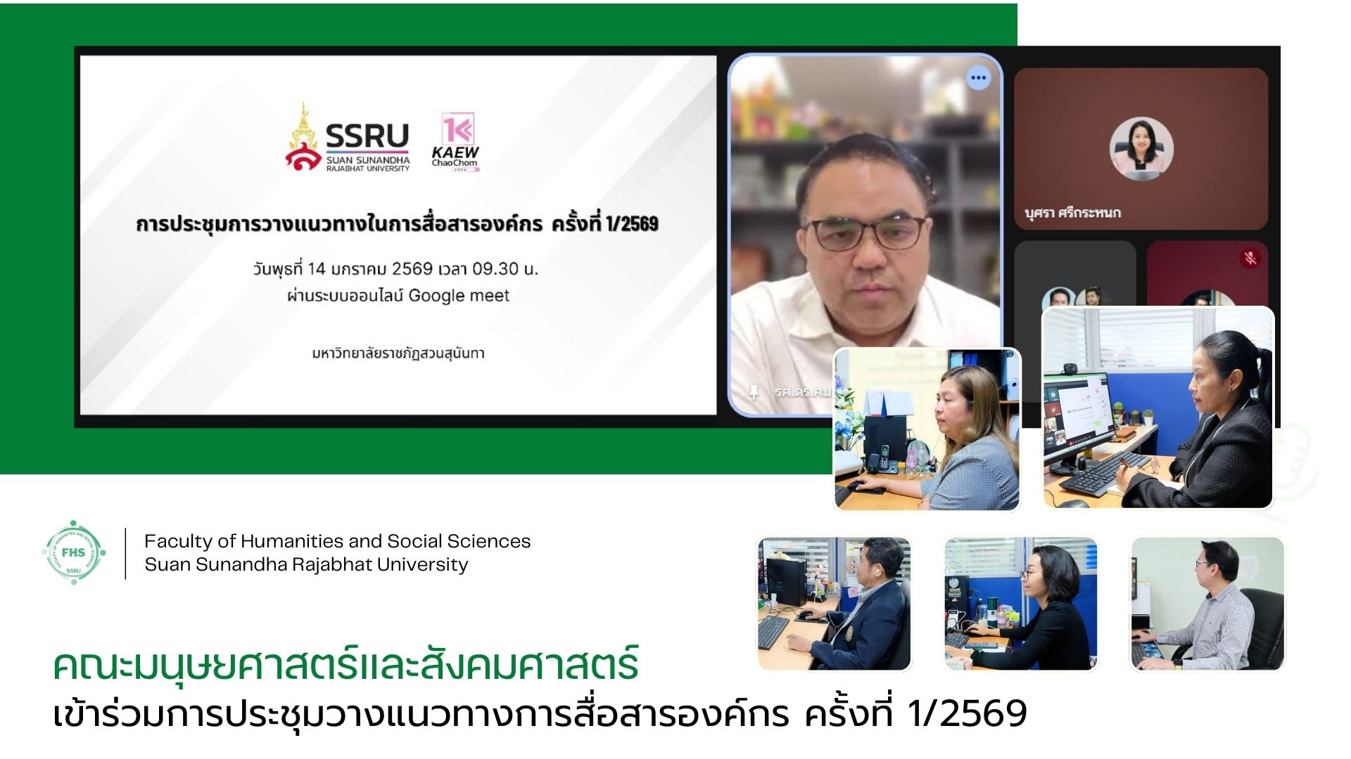 January 14, 2026, 09:30 hrs. - Ms. Nutchanart Pengsuriya, Acting Head of the Faculty Office, together with Ms. Toonlada Petchampai, Head of the General Administration Division, and relevant public relations and corporate communications staff, attended the first corporate communication guidelines meeting for the Fiscal Year 2026, where Assoc. Prof. Dr. Komsan Somanawat, Vice President for Administration, presided over the meeting via Google Meet.