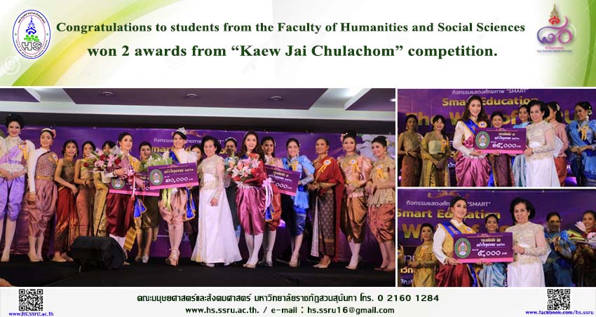 Congratulations to students from the Faculty of Humanities and Social Sciences won 2 awards from “Kaew Jai Chulachom” competition.