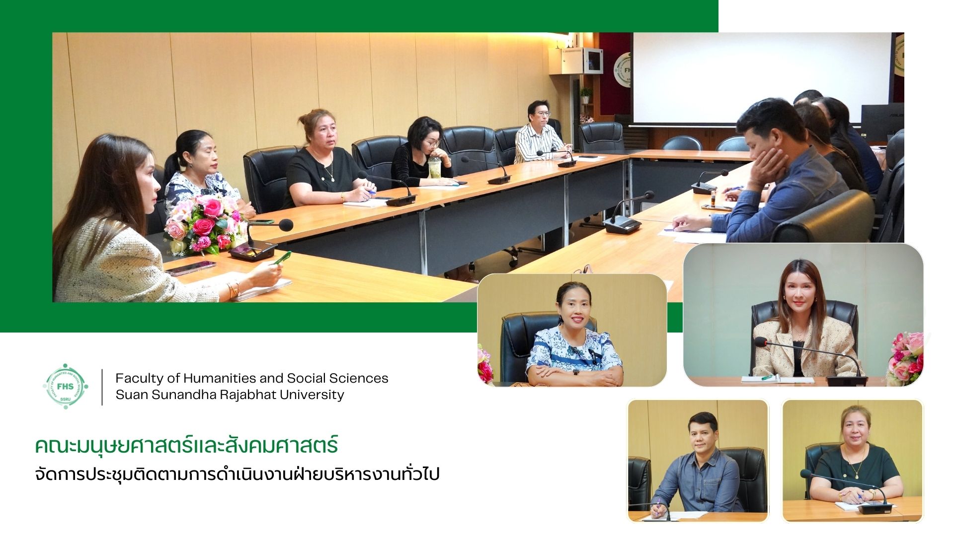 November 12, 2025, at 10:00 hrs. - The General Administration Division of the Faculty of Humanities and Social Sciences arranged the follow-up meeting, where Dr. Patcharaphan Susamawathanakun, Associate Dean for Administration, presided over the meeting to follow up on the operational progress by the Key Performance Indicators (KPIs), along with Ms. Nutchanart Pengsuriya, Acting Head of the Office, and staff of the General Administration Division and the Finance and Supplies Division, at the Pornsopin Meeting Room, 1st Floor, Building 35, Faculty of Humanities and Social Sciences, Suan Sunandha Rajabhat University.