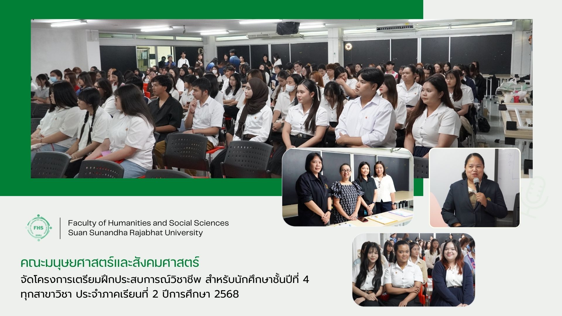 December 12, 2025, at 13:00 hrs. - The Education Services Division of the Faculty of Humanities and Social Sciences organized a Professional Experience Preparation Program for the second semester of the 2025 academic year to enhance all fourth-year students’ readiness before starting the professional internships.