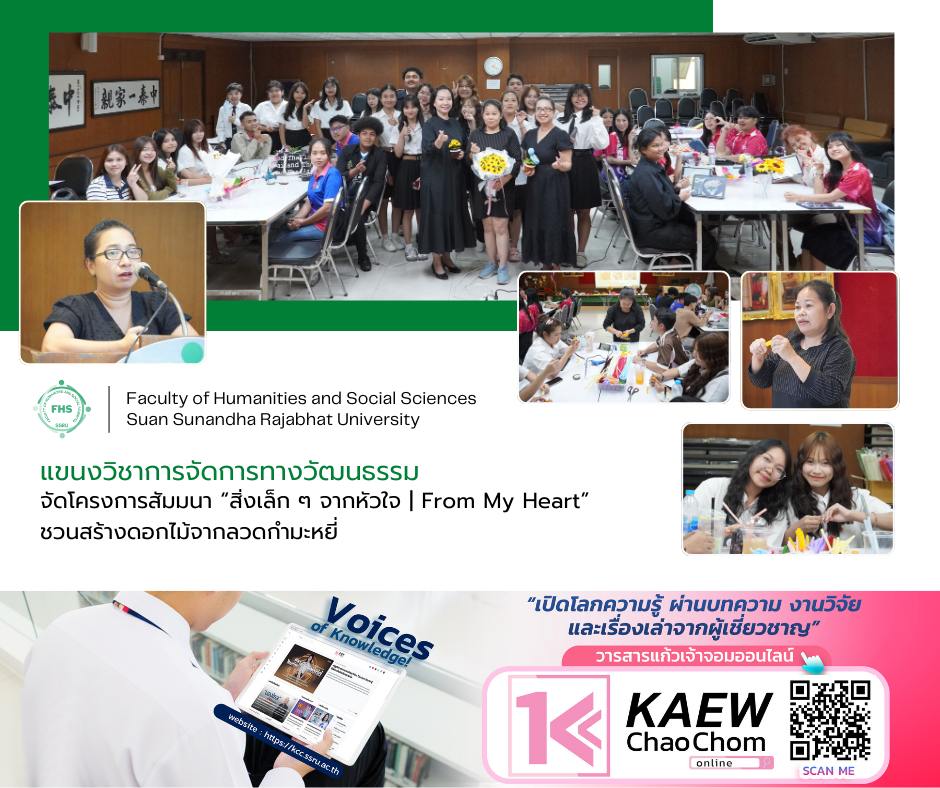 February 11, 2026, 13:00 hrs. - The Cultural Management Program of the Faculty of Humanities and Social Sciences organized a creative and heartwarming seminar on “Small Things from My Heart” to handcraft flowers using velvet wires and to express feelings, intentions, and meaningful messages through delicate craftsmanship.