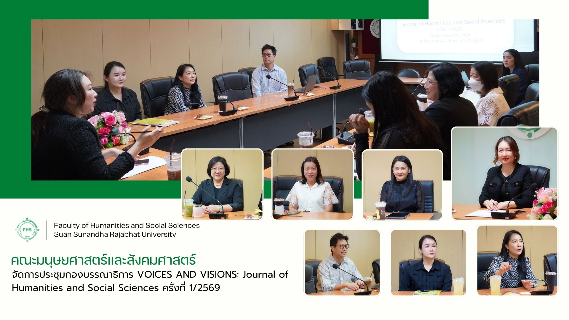 December 3, 2025 - Dr. Napasri Suwanajote, Dean of the Faculty of Humanities and Social Sciences, presided over the 1st editorial board meeting of VOICES AND VISIONS: Journal of Humanities and Social Sciences for the Fiscal Year 2026, where Dr. Siriman Wattana (Associate Dean for Research and Academic Services), Dr. Aungkana Sukwises (Associate Dean for Academic Affairs), Dr. Angvarrah Lieungnapar (Associate Dean for Business Development and Revenue Generation), Asst. Prof. Thanis Tangkitjaroenkun (Consultants), Assoc. Prof. Dr. Sasa Watanapokakul (Editor in Chief), Dr. Yuwadee Tirataradol (Associate Editors), and relevant staff at the Pornsopin Meeting Room on the 1st Floor of Building 35, Faculty of Humanities and Social Sciences.
