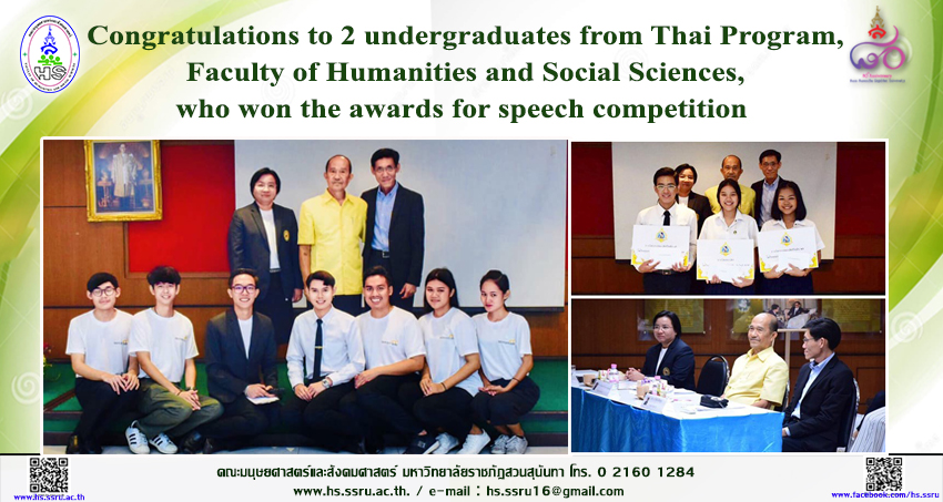 Congratulations to 2 undergraduates from Thai Program, Faculty of Humanities and Social Sciences, who won the awards for speech competition
