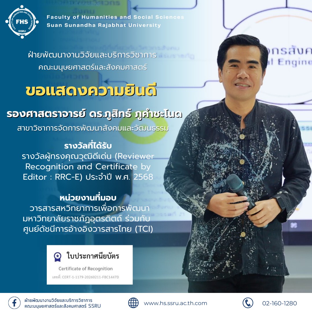 The Faculty of Humanities and Social Sciences extends congratulations to Assoc. Prof. Dr. Phusit Phukamchanoad (Social and Cultural Development Management Program)