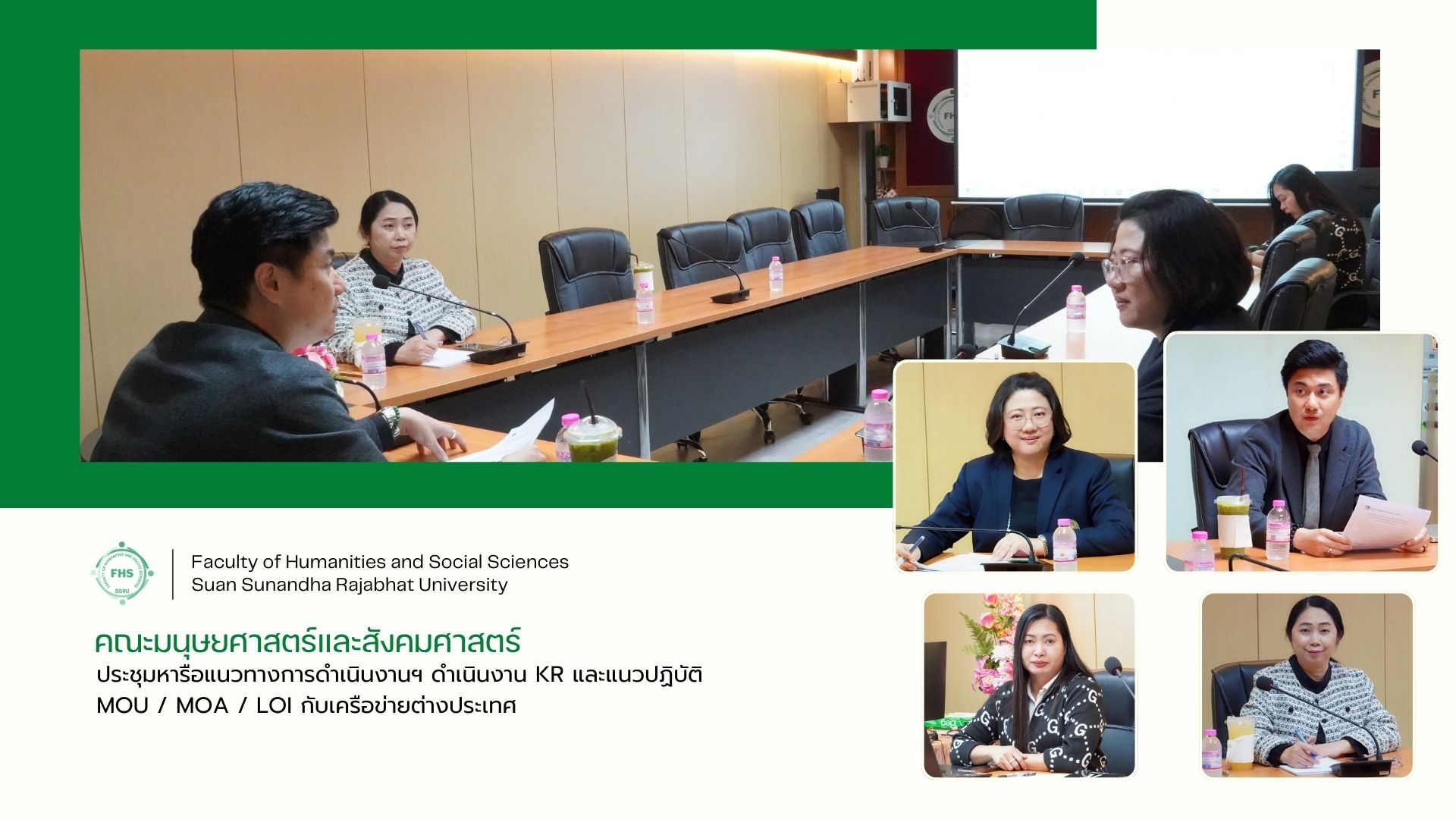 November 21, 2025, at 13:00 hrs. - Dr. Angvarrah Lieungnapar, Associate Dean for Business Development and Revenue Generation, Faculty of Humanities and Social Sciences, attended a meeting to discuss operational guidelines, KR implementation, and practices for MOU/MOA/LOI with international networks with Aj. Tonfon Subnirand, Assistant to the President for International Affairs, along with the relevant staff in the Pornsopin Meeting Room on the 1st Floor of Building 35, Faculty of Humanities and Social Sciences.