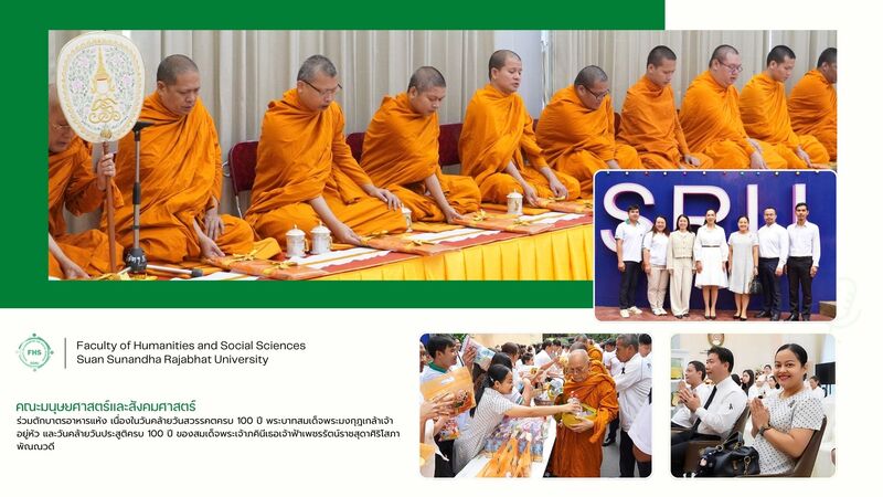 On November 24, 2025, at 07:00 hrs. – Asst. Prof. Dr. Jiraporn Adchariyaprasit, Associate Dean for Student Affairs, Faculty of Humanities and Social Sciences, along with staff, participated in a merit-making ceremony on the occasion of the 100th Death Anniversary of His Majesty King Vajiravudh (Rama VI) and the 100th Birthday Anniversary of Her Royal Highness Princess Bejaratana Rajasuda Sirisobhabannavadi, organized by the Student Activities and Alumni Affairs, Student Development Division, at the lobby on the 1st Floor of the President's Office Building, Suan Sunandha Rajabhat University.