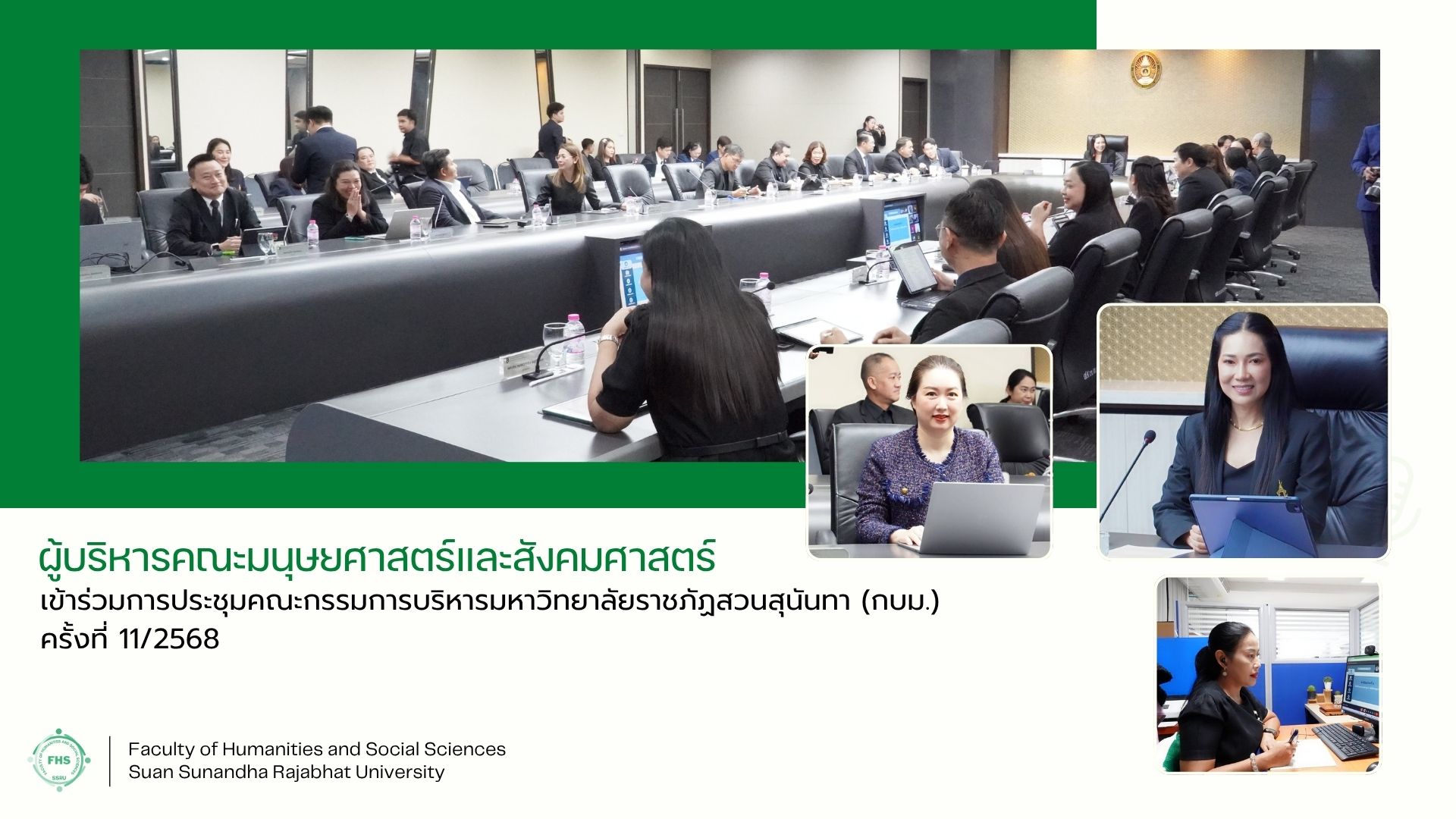 November 12, 2025, 08:30 hrs. - Dr. Napasri Suwanajote, Dean of the Faculty of Humanities and Social Sciences, attended the 11th meeting of the University Executive Board Committee for the Year 2025, where Assoc. Prof. Dr. Chutikarn Sriviboon, President, presided over the meeting at the University Council Meeting Room, 5th Floor, Building 31, along with Ms. Nutchanart Pengsuriya, Acting Head of the Office, attended via Google Meet.