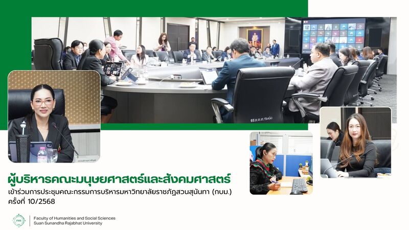 October 14, 2025, 08:30 hrs. - Dr. Napasri Suwanajote, Dean of the Faculty of Humanities and Social Sciences, attended the 10th meeting of the University Executive Board Committee for the year 2025, where Assoc. Prof. Dr. Chutikarn Sriviboon, President, presided over the meeting at the University Council Meeting Room, 5th Floor, Building 31, along with Ms. Nutchanart Pengsuriya, Acting Head of the Office, attended via Google Meet.
