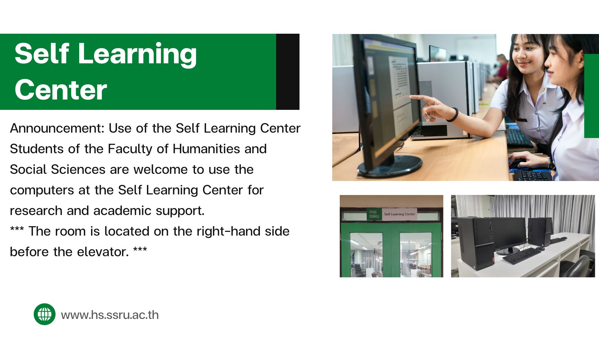 Students of the Faculty of Humanities and Social Sciences are welcome to use the computers at the Self Learning Center for research and academic support.