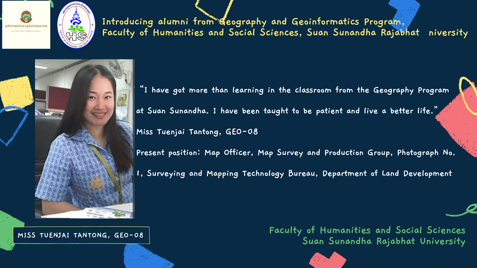 Introducing alumni from Geography and Geoinformatics Program, Faculty of Humanities and Social Sciences, Suan Sunandha Rajabhat University