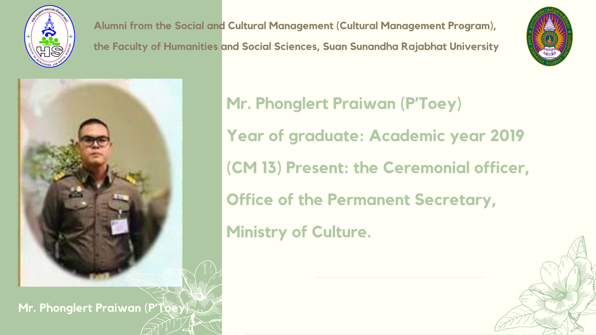 Alumni from the Social and Cultural Management (Cultural Management Program), the Faculty of Humanities and Social Sciences, Suan Sunandha Rajabhat University