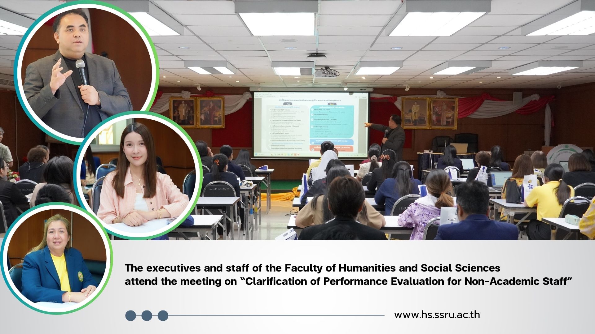 April 28, 2025 - Aj. Patcharapan Susamawattanakul, Associate Dean for Administration, together with Ms. Toonlada Phetampai, Head of the General Administration, Faculty of Humanities and Social Sciences, attended the meeting on “Clarification of Performance Evaluation for Non-Academic Staff”, organized by the Human Resources Division, where Asst. Prof. Dr. Khomsan Somanawat, Vice President for Administration was the chair, at Nipa Noppadol Meeting Room, 2 Fl., Building 35, Faculty of Humanities and Social Sciences, Suan Sunandha Rajabhat University.