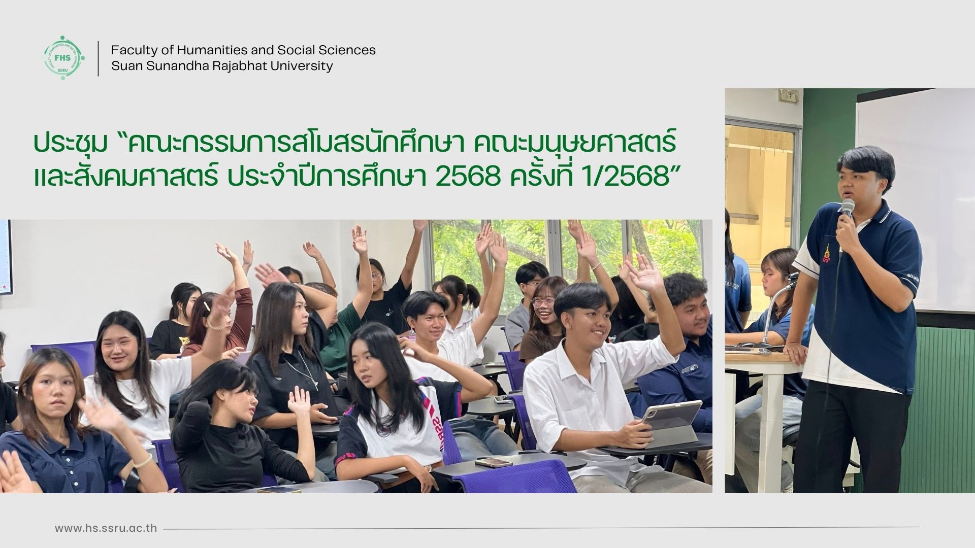 October 27, 2025, 15:00 hrs. - The Student Affairs and Arts & Culture Division, Faculty of Humanities and Social Sciences in collaboration with the Student Club, committee members, subcommittee members, and student representatives attended the 1st Student Club Committee of the Faculty of Humanities and Social Sciences Meeting, for the Academic Year 2025, aimed to present the student activity calendar for the Academic Year 2025, to share opinions and student development activity guidelines, to discuss the student welfare aligned with the operational plan for effective student development.