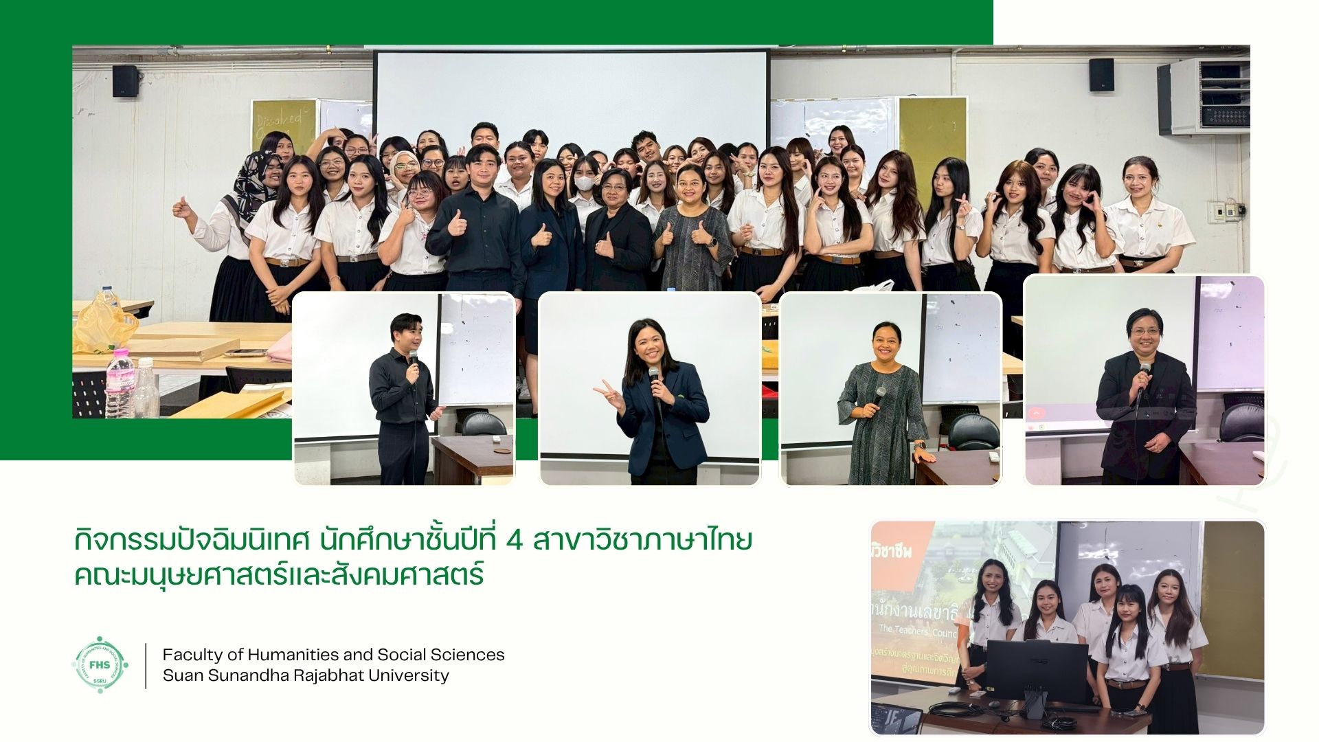 October 30, 2025 - The Thai Program of the Faculty of Humanities and Social Sciences organized a farewell activity for the 4th-year students (Class of 2022) as part of the Professional Internship in the Thai Program. During the event, students presented summaries of their internship experiences, including the knowledge and skills gained, challenges encountered, and solutions applied in each workplace.