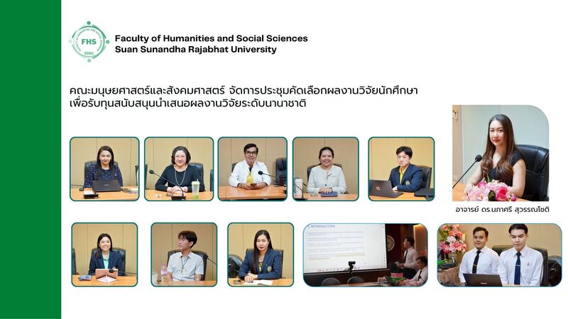 October 6, 2025, 10:00 hrs. - Dr. Napasri Suwanajote, Dean of the Faculty of Humanities and Social Sciences, presided over a meeting to select student research projects for research presentation grants at the International Conference on Education, Business, Technology and Social Sciences (ICEBTS) 2026 in Japan, including the associate deans, heads of departments, lecturers, and relevant staff, at Pornsopin Meeting Room, 1st Floor, Building 35, Suan Sunandha Rajabhat University.
