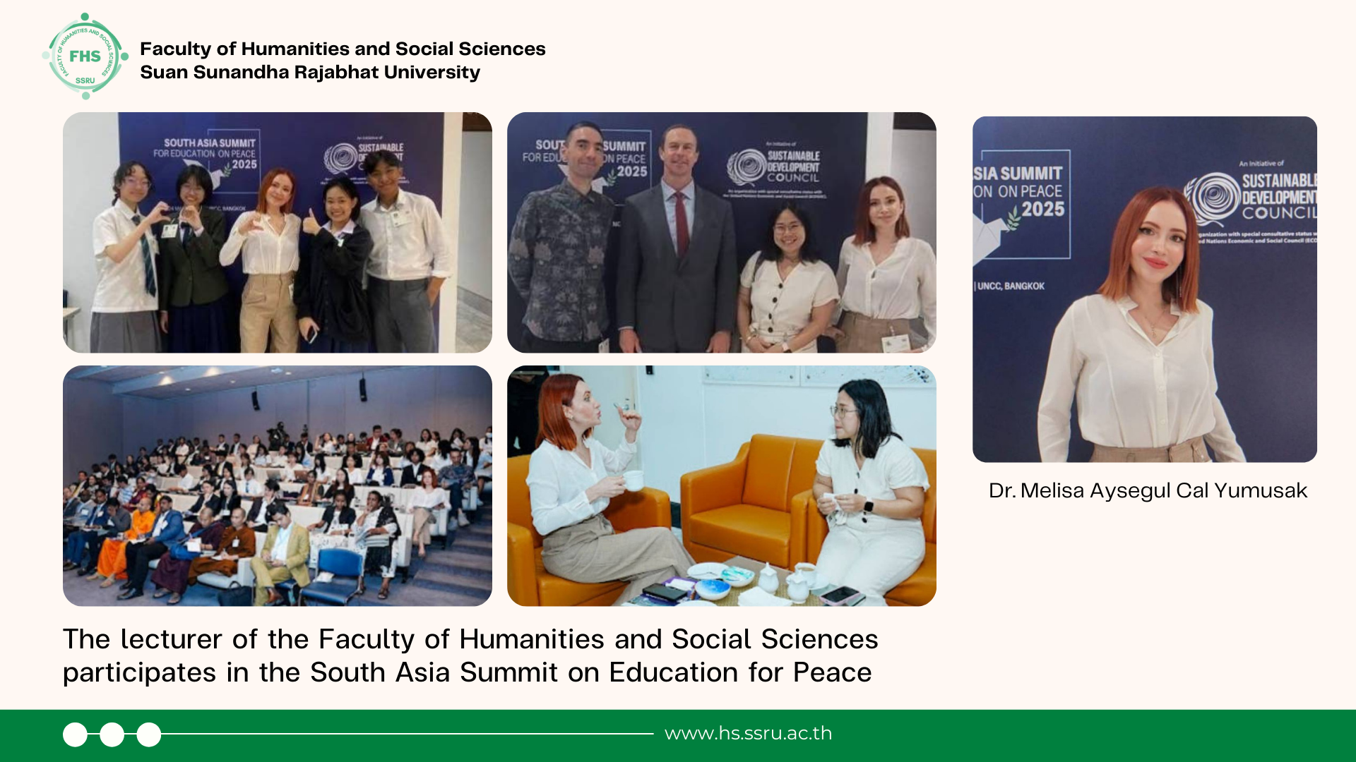 March 24, 2025 – Dr. Melisa Aysegul Cal Yumusak, English Program lecturer of the Faculty of Humanities and Social Sciences participated in the South Asia Summit on Education for Peace at the United Nations Conference Centre (UNCC), Bangkok where leaders, academics, policymakers, youth advocates, and representatives from 13 countries deliberated on the transformative role of education in promoting peace, inclusion, and sustainable development.