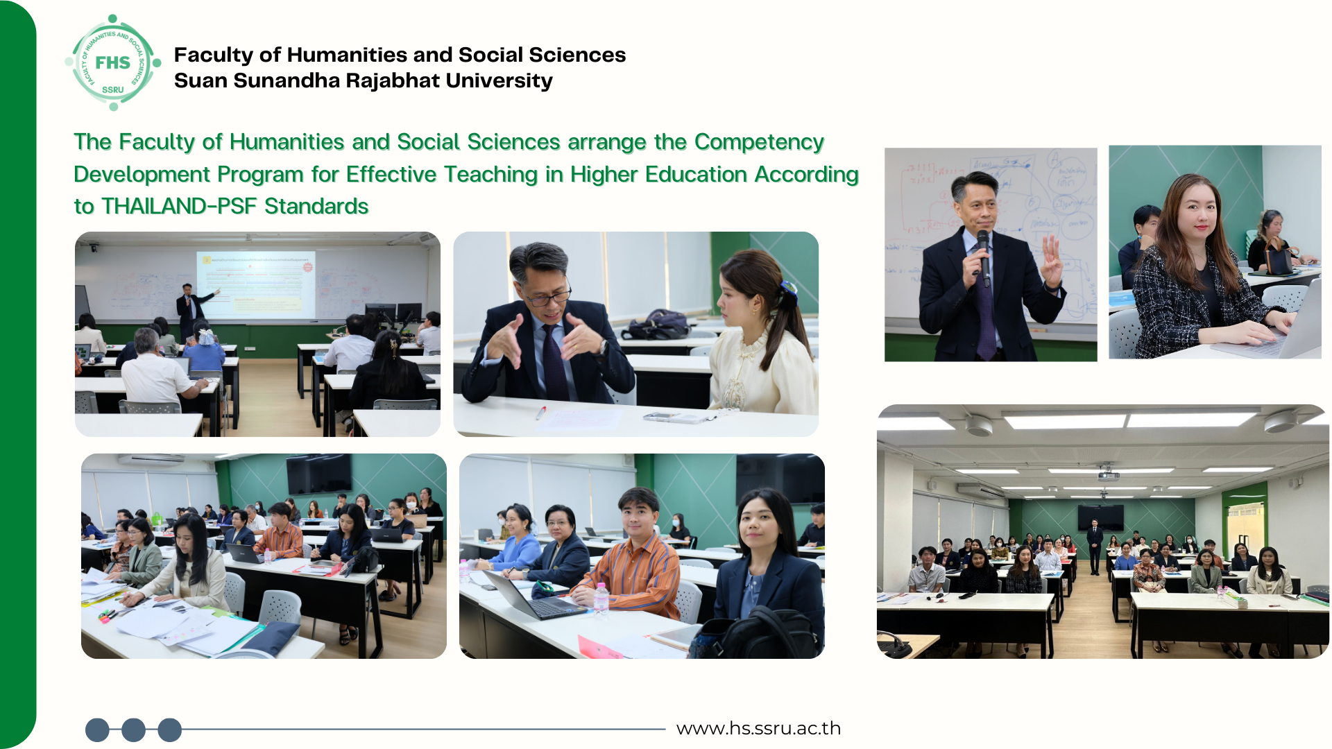 March 6, 2025, 09:00 hrs. - The Faculty of Humanities and Social Sciences, Suan Sunandha Rajabhat University arranged the "Competency Development Project for Effective Teaching in Higher Education According to THAILAND-PSF Standards", where Dr. Napasri Suwanajote, Dean of the Faculty of Humanities and Social Sciences, the executives and lecturers both FHS and other Faculties attended.