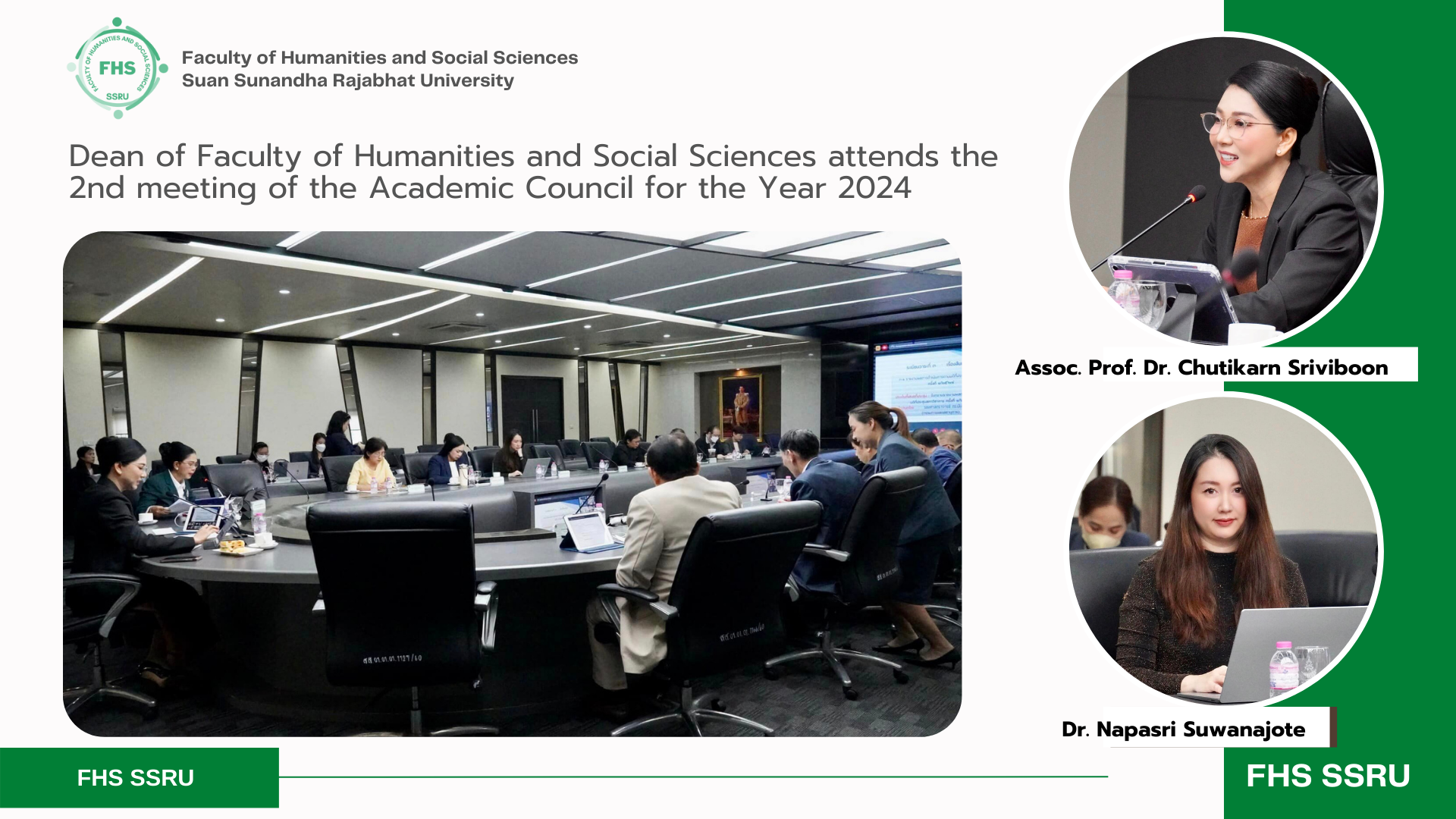 February 14, 2024 - Dr. Napasri Suwanajote, Dean of the Faculty of Humanities and Social Sciences attended the 2nd meeting of the Academic Council for the Year 2024, hosted by the Education Service Division, where Assoc. Prof. Dr. Chutikarn Sriviboon, President is the chair at University Council Meeting Room, 5Fl., Building 31, Suan Sunandha Rajabhat University.