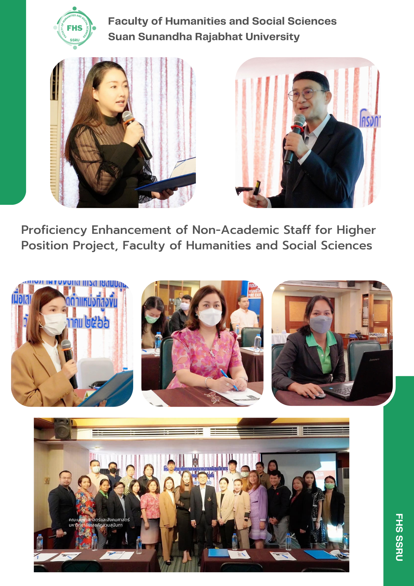 May 11, 2023 – Administration Department of the Faculty of Humanities and Social Sciences arranged the Proficiency Enhancement of Non-Academic Staff for Higher Position Project, where Asst. Prof. Dr. Suttipong Boonphadung was the honorary speaker. Aj. Napasri Suwanajote, Dean of the Faculty of Humanities and Social Sciences presided over the project together with Aj. Patcharaphan Susamawathanakun (Associate Dean for Administration), Mrs. Amornwadee Klinchan (Head of the Dean’s Office), and non-academic staff of the Faculty of Humanities and Social Sciences attended at Tapaokaew Meeting Room, 2Fl., Riverside Hotel, Bangkok.
