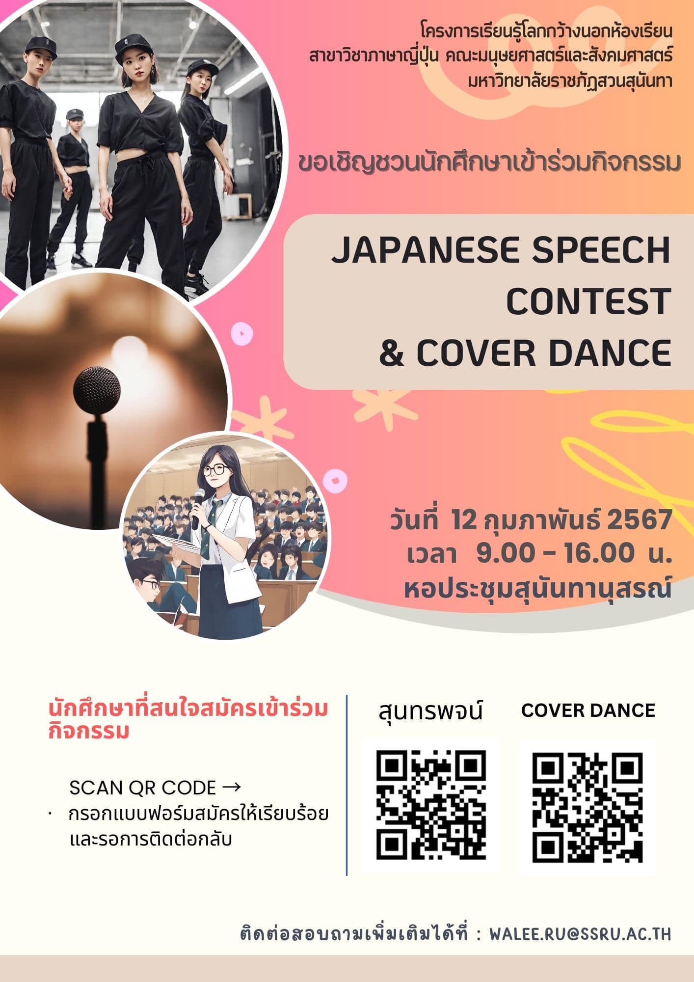 Japanese Program of the Faculty of Humanities and Social Sciences invites all 1st-year students to 4th-year students of the Japanese Program to attend the Leaning Beyond Classroom Project: Cover Dance Competition and Japanese Speech Competition, “失敗から学んだこと”