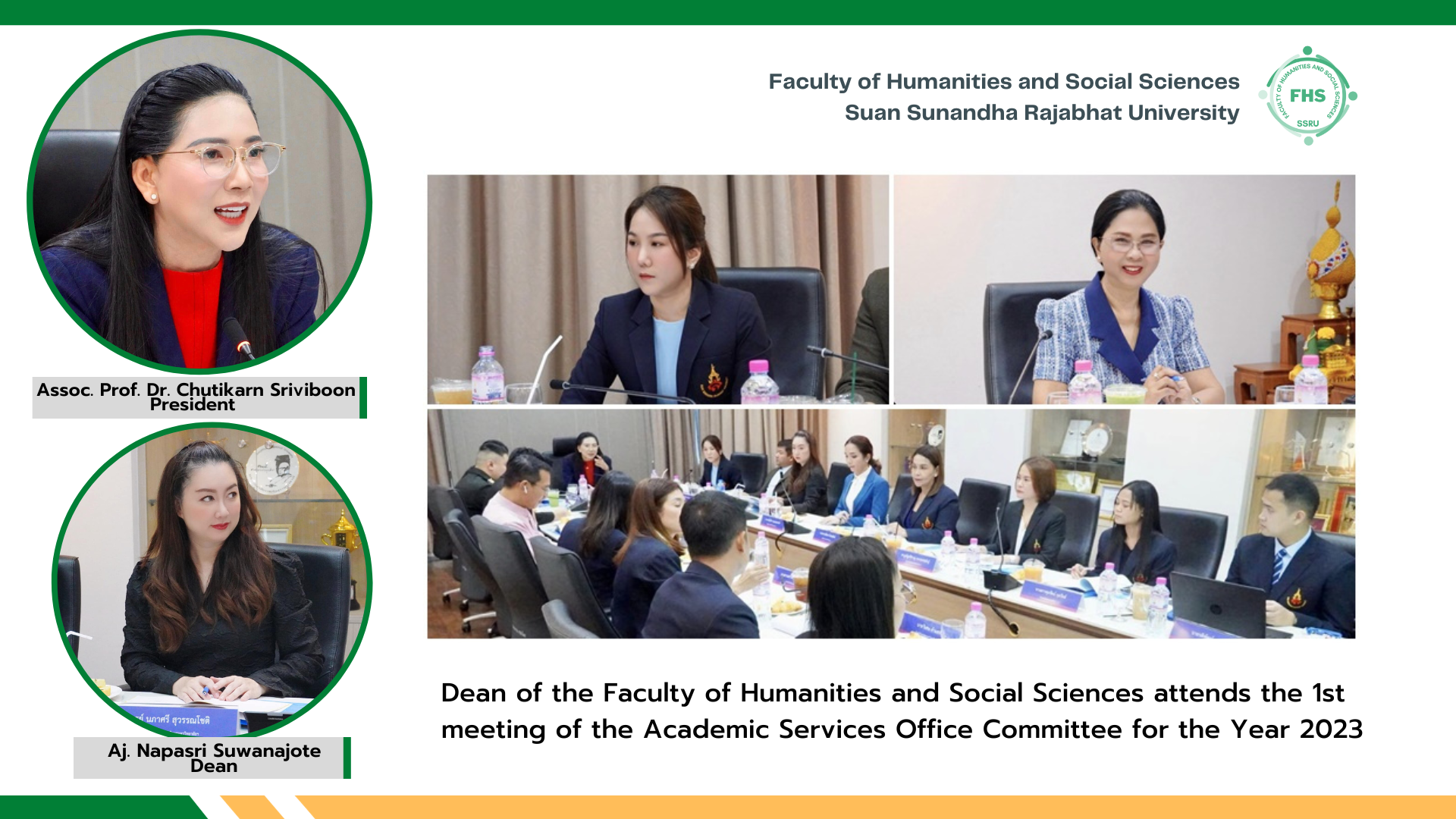 November 9, 2023 - Aj. Napasri Suwanajote, Dean of the Faculty of Humanities and Social Sciences attended the 1st meeting of the Academic Services Office Committee for the Year 2023, where Assoc. Prof. Dr. Chutikarn Sriviboon, President was the chair at Panjamarach Meeting Room, 1 Fl., Building 32.