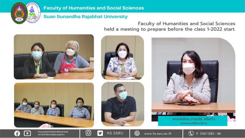 Dr. Paranee Srikeaw, the Vice-Dean for Administration of the Faculty of Humanities and Social Sciences, presided over the meeting to prepare the building before class 1-2022 starts, such as classrooms and instruments for learning management and all facilities. In this meeting, Mrs. Amornvadee Klinjan, the Head of the Office Dean, participated with the Management and Administration Officer, Buildings and Places, at Phornsophin meeting room, the Faculty of Humanities, and Social Sciences, on June 14th, 2022.