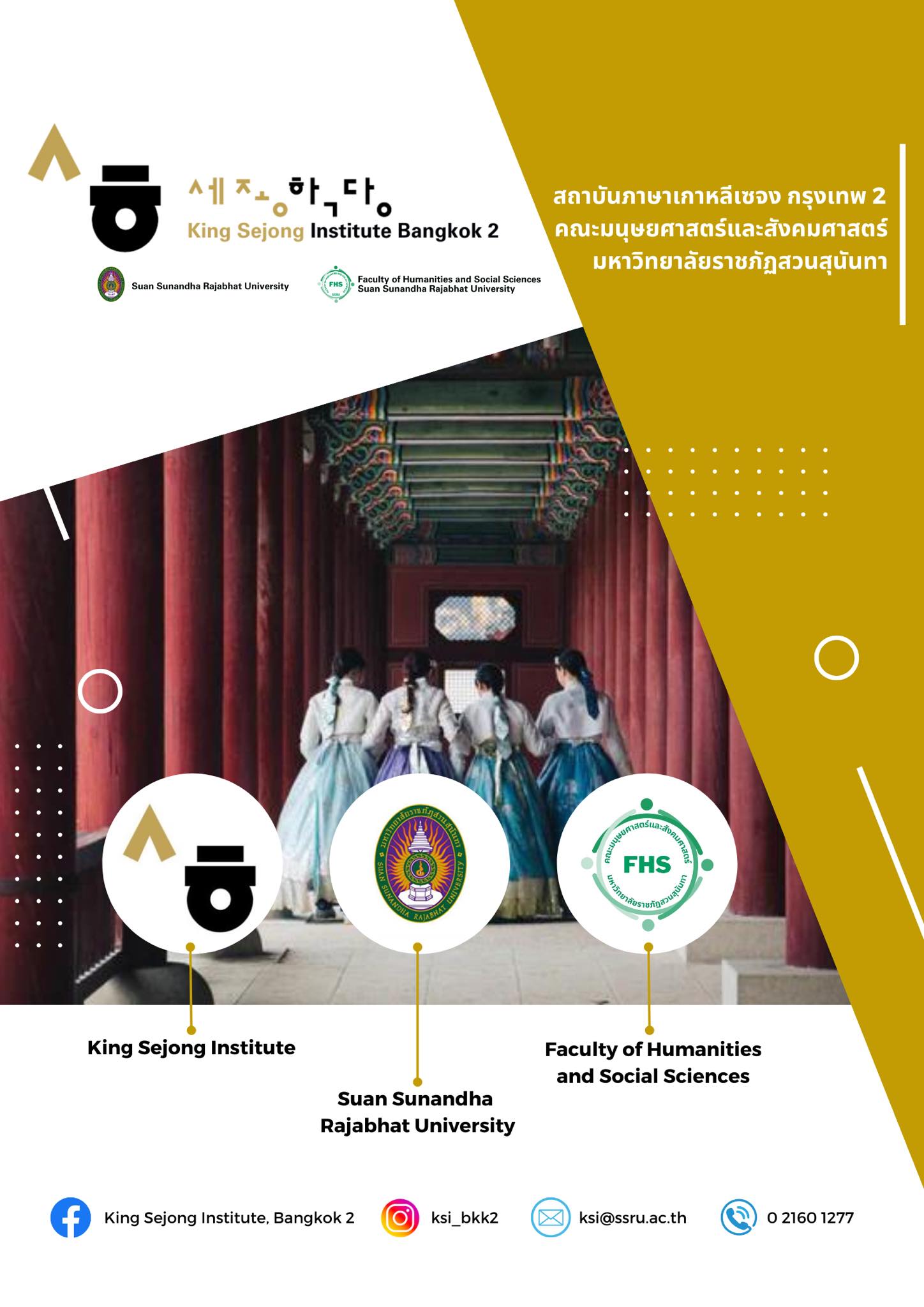The Faculty of Humanities and Social Sciences (FHS), Suan Sunandha Rajabhat University is selected and fund supported by the King Sejong Institute, the Republic of Korea which is a support section for Korean language and culture institutes abroad to provide Korean teaching and training as named, “King Sejong Institue, Bangkok 2”.