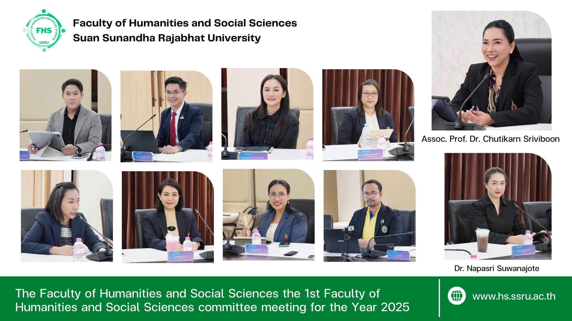 January 27, 2025, 13:00 hrs. – – Dr. Napasri Suwanajote, Dean of the Faculty of Humanities and Social Sciences attended the 1st Faculty of Humanities and Social Sciences committee meeting for the Year 2025, with Assoc. Prof. Dr. Chutikarn Sriviboon, President as the chair, including Asst. Prof. Dr. Nutthapat Kaewrattanapat, Vice President for Academic Affairs, Assoc. Prof. Dr. Singhanat Nomnian, Assoc. Prof. Dr. Sasa Watanapokakul, with associate deans and the committee, at the Office of the President, 5th Floor, Suan Sunandha Rajabhat University.
