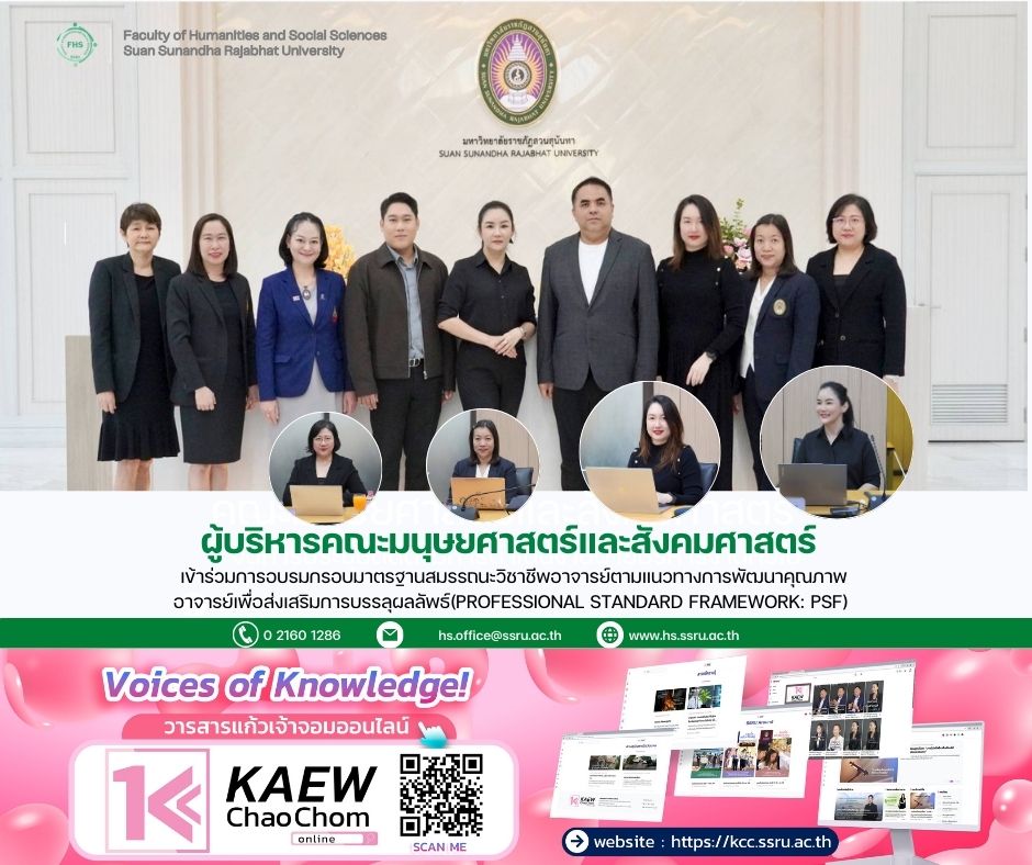 ผู้บริหารคณะมนุษยศาสตร์และสังคมศาสตร์ เข้าร่วมการอบรมกรอบมาตรฐานสมรรถนะวิชาชีพอาจารย์ตามแนวทางการพัฒนาคุณภาพอาจารย์เพื่อส่งเสริมการบรรลุผลลัพธ์ (Professional Standard Framework: PSF)