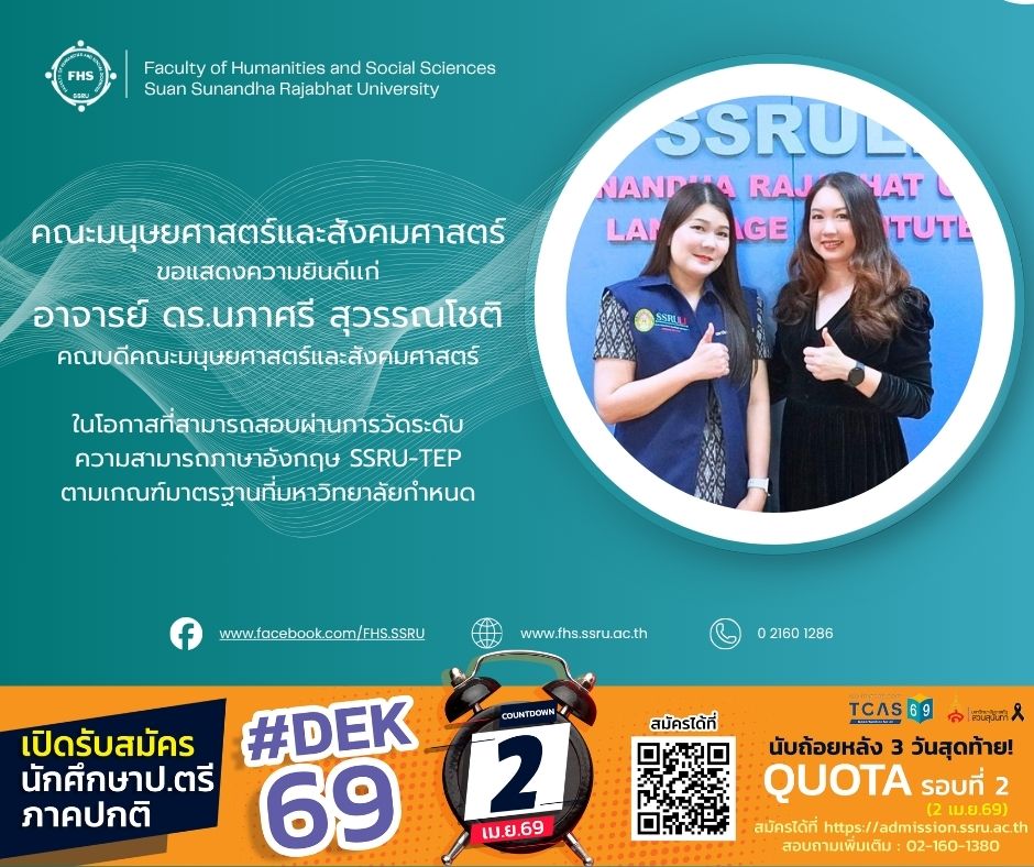 คณะมนุษยศาสตร์และสังคมศาสตร์ ขอแสดงความยินดีเเก่ อาจารย์ ดร.นภาศรี สุวรรณโชติ