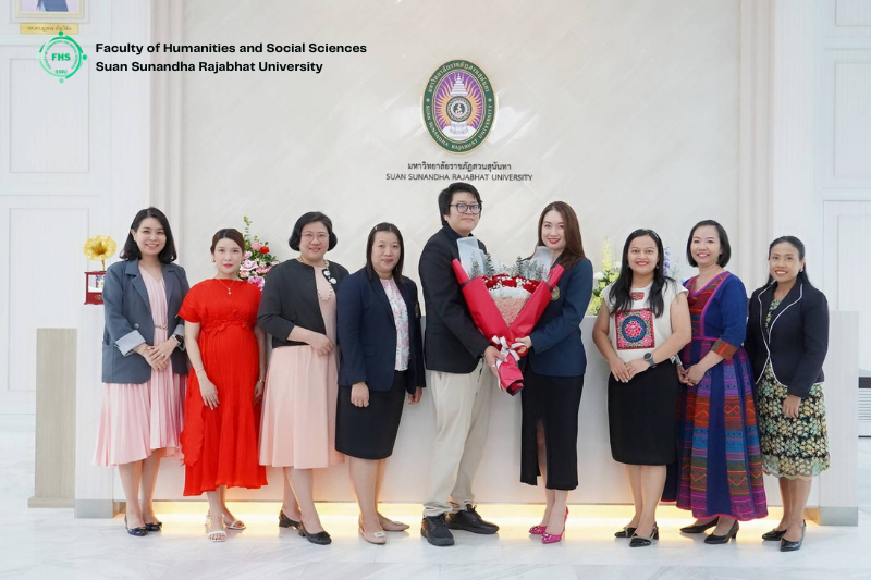 วันที่ 13 ธันวาคม 2567 อาจารย์ ดร.นภาศรี สุวรรณโชติ คณบดีคณะมนุษยศาสตร์และสังคมศาสตร์ มหาวิทยาลัยราชภัฏสวนสุนันทา พร้อมด้วย อาจารย์ พัชราพรรณ สุสมาวัตนะกุล รองคณบดีฝ่ายบริหาร, อาจารย์ ดร.อังคณา สุขวิเศษ รองคณบดีฝ่ายวิชาการ, ผู้ช่วยศาสตราจารย์ ดร.วาสนา สุรีย์เดชะกุล รองคณบดีฝ่ายแผนงานและประกันคุณภาพ, อาจารย์ ดร.อังค์วรา เหลืองนภา รองคณบดีฝ่ายวิจัยและบริการวิชาการ, ผู้ช่วยศาสตราจารย์ ดร.จิราภรณ์ อัจฉริยะประสิทธิ์รองคณบดีฝ่ายกิจการนักศึกษา, อาจารย์ไพลิน กลิ่นเกษร หัวหน้าภาควิชามนุษยศาสตร์, และนางสาวนุชนารถ เพ็งสุริยา รักษาการหัวหน้าสำนักงาน ร่วมมอบช่อดอกไม้แสดงยินดีแก่ ผู้ช่วยศาสตราจารย์ ดร.มรกต วรชัยรุ่งเรือง ในโอกาสได้รับการแต่งตั้งให้ดำรงตำแหน่ง “ผู้อำนวยการสถาบันวิจัยและพัฒนา” ณ ห้องรับรอง ชั้น 1 อาคารสำนักงานอธิการบดี มหาวิทยาลัยราชภัฏสวนสุนันทา