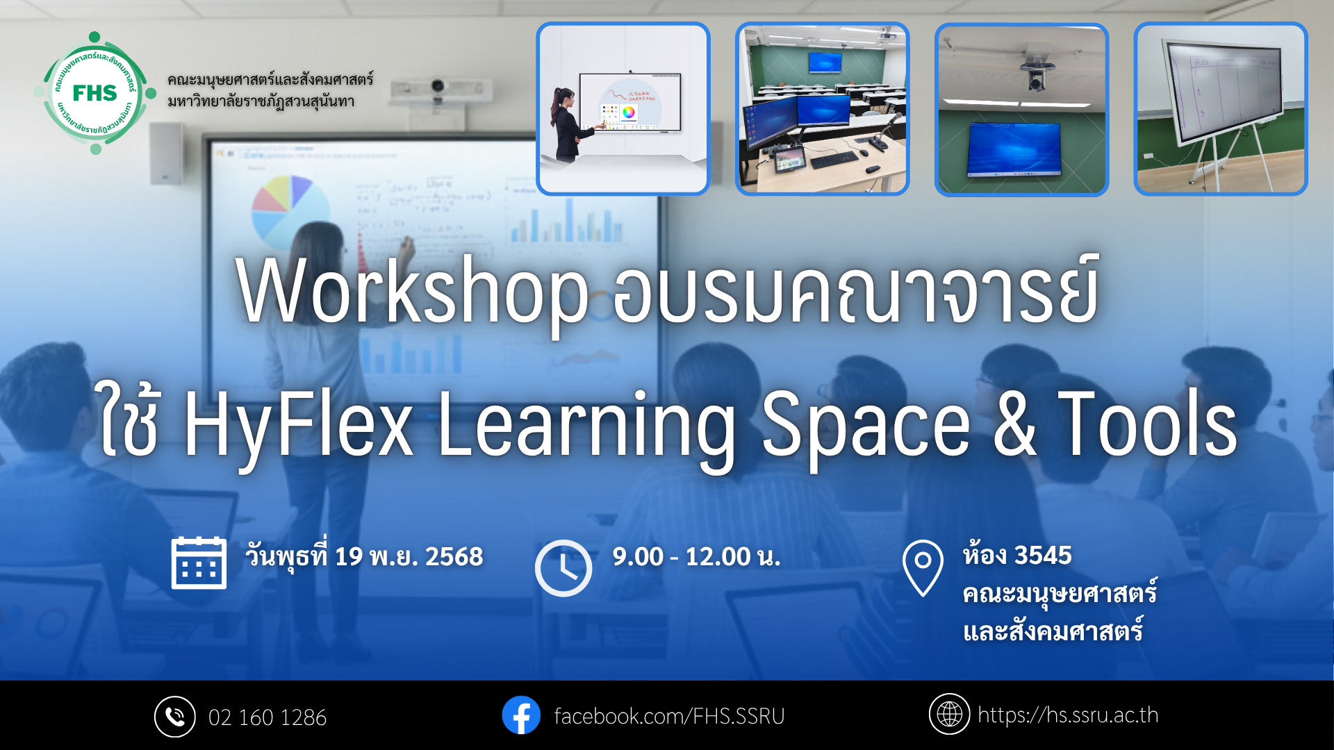 ขอเชิญคณาจารย์คณะมนุษยศาสตร์และสังคมศาสตร์ เข้าร่วม Workshop อบรมการใช้ HyFlex Learning Space & Tools