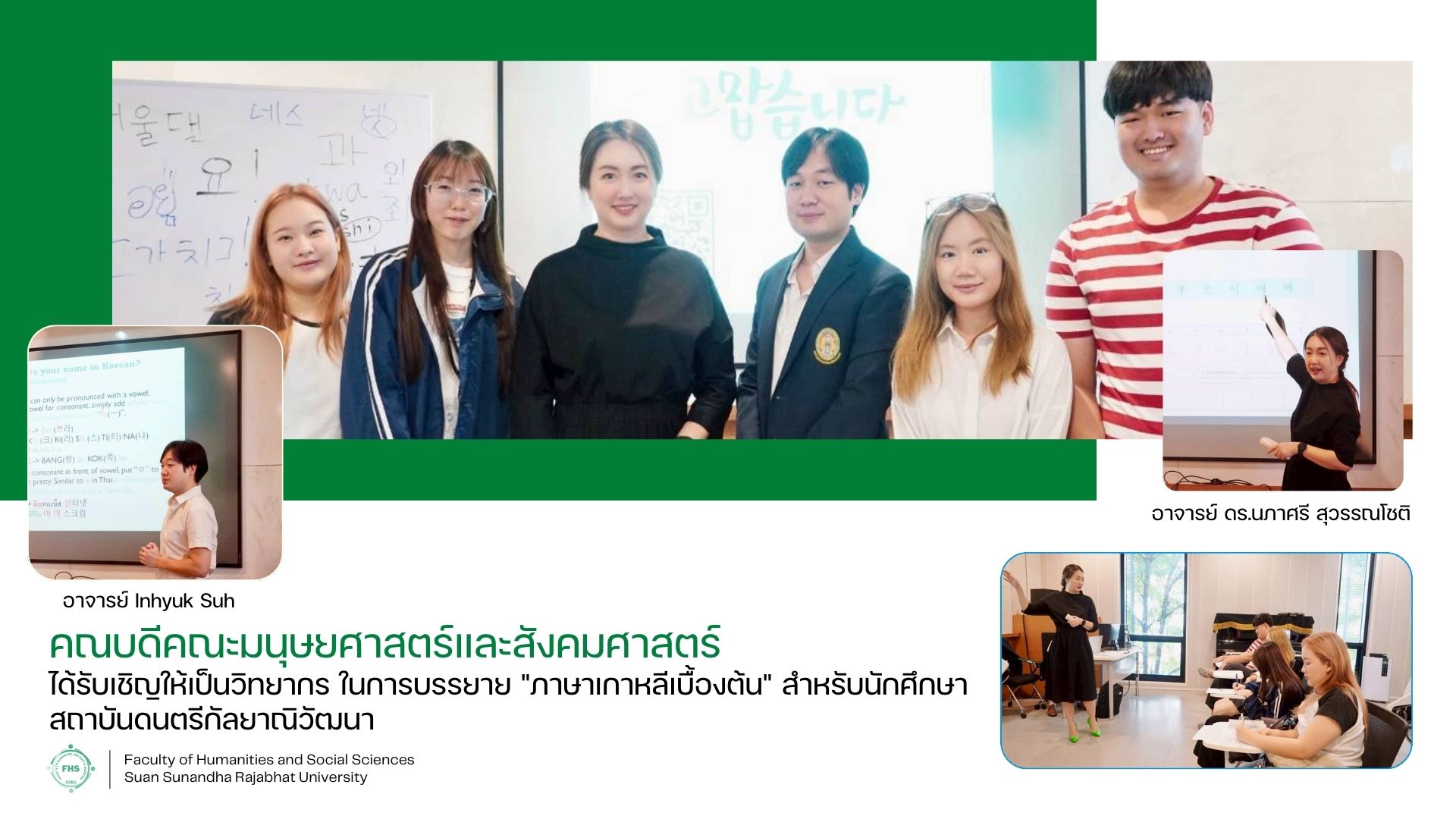 คณบดีคณะมนุษยศาสตร์และสังคมศาสตร์ ได้รับเชิญให้เป็นวิทยากร ในการบรรยาย "ภาษาเกาหลีเบื้องต้น" สำหรับนักศึกษาสถาบันดนตรีกัลยาณิวัฒนา