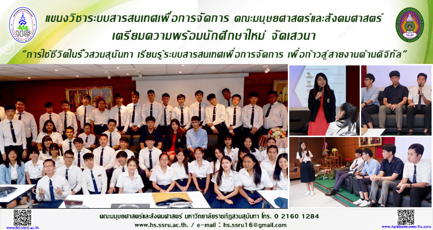 แขนงวิชาระบบสารสนเทศเพื่อการจัดการ คณะมนุษยศาสตร์และสังคมศาสตร์ เตรียมความพร้อมนักศึกษาใหม่ จัดเสวนา"การใช้ชีวิตในรั้วสวนสุนันทา เรียนรู้ระบบสารสนเทศเพื่อการจัดการ เพื่อก้าวสู่สายงานด้านดิจิทัล"