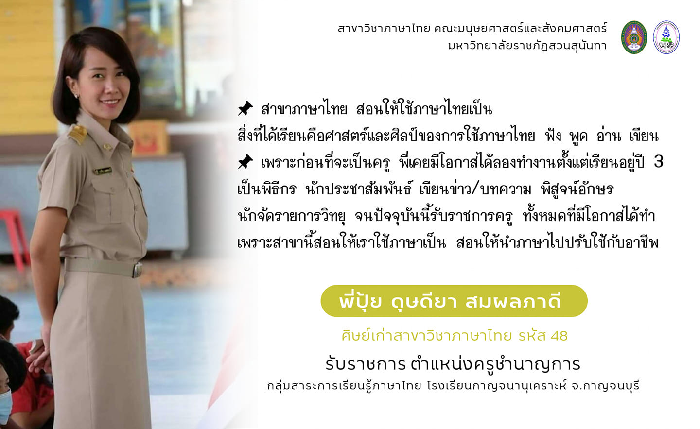 แนะนำศิษย์เก่า สาขาวิชาภาษาไทย คณะมนุษยศาสตร์และสังคมศาสตร์ มหาวิทยาลัยราชภัฏสวนสุนันทา