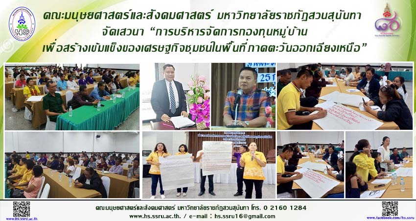 คณะมนุษยศาสตร์และสังคมศาสตร์ มหาวิทยาลัยราชภัฎสวนสุนันทา จัดเสวนา “การบริหารจัดการกองทุนหมู่บ้านเพื่อสร้างเข้มแข็งของเศรษฐกิจชุมชนในพื้นที่ภาคตะวันออกเฉียงเหนือ”