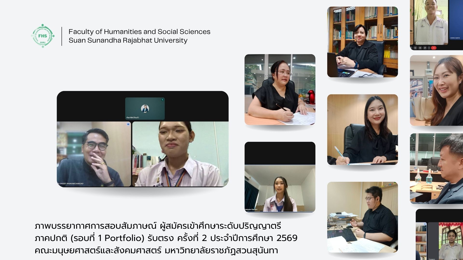 ภาพบรรยากาศการสอบสัมภาษณ์ ผู้สมัครเข้าศึกษาระดับปริญญาตรี ภาคปกติ (รอบที่ 1 Portfolio) รับตรง ครั้งที่ 2 ประจำปีการศึกษา 2569 คณะมนุษยศาสตร์และสังคมศาสตร์ มหาวิทยาลัยราชภัฏสวนสุนันทา