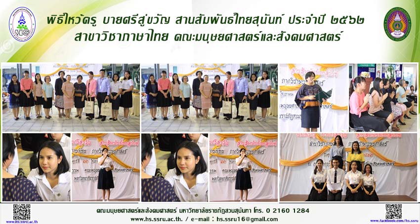 พิธีไหว้ครู บายศรีสู่ขวัญ สานสัมพันธ์ไทยสุนันท์ ประจำปี ๒๕๖๒ สาขาวิชาภาษาไทย คณะมนุษยศาสตร์และสังคมศาสตร์