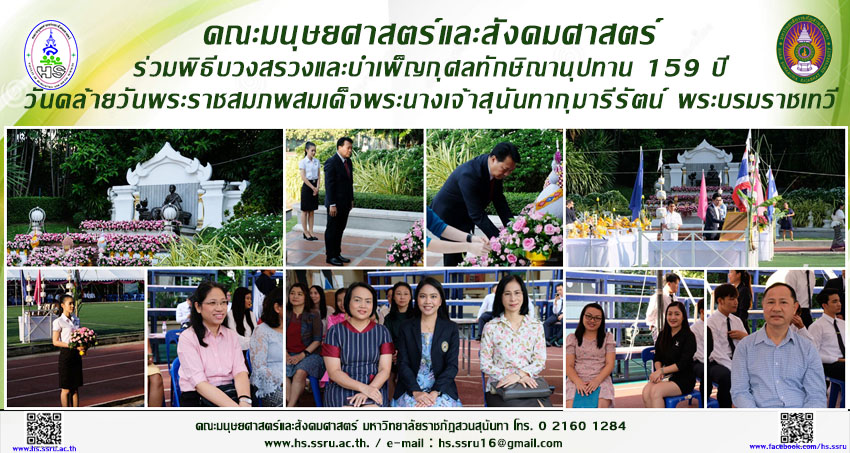 คณะมนุษยศาสตร์และสังคมศาสตร์ ร่วมพิธีบวงสรวงและบำเพ็ญกุศลทักษิณานุปทาน 159 ปี วันคล้ายวันพระราชสมภพสมเด็จพระนางเจ้าสุนันทากุมารีรัตน์ พระบรมราชเทวี