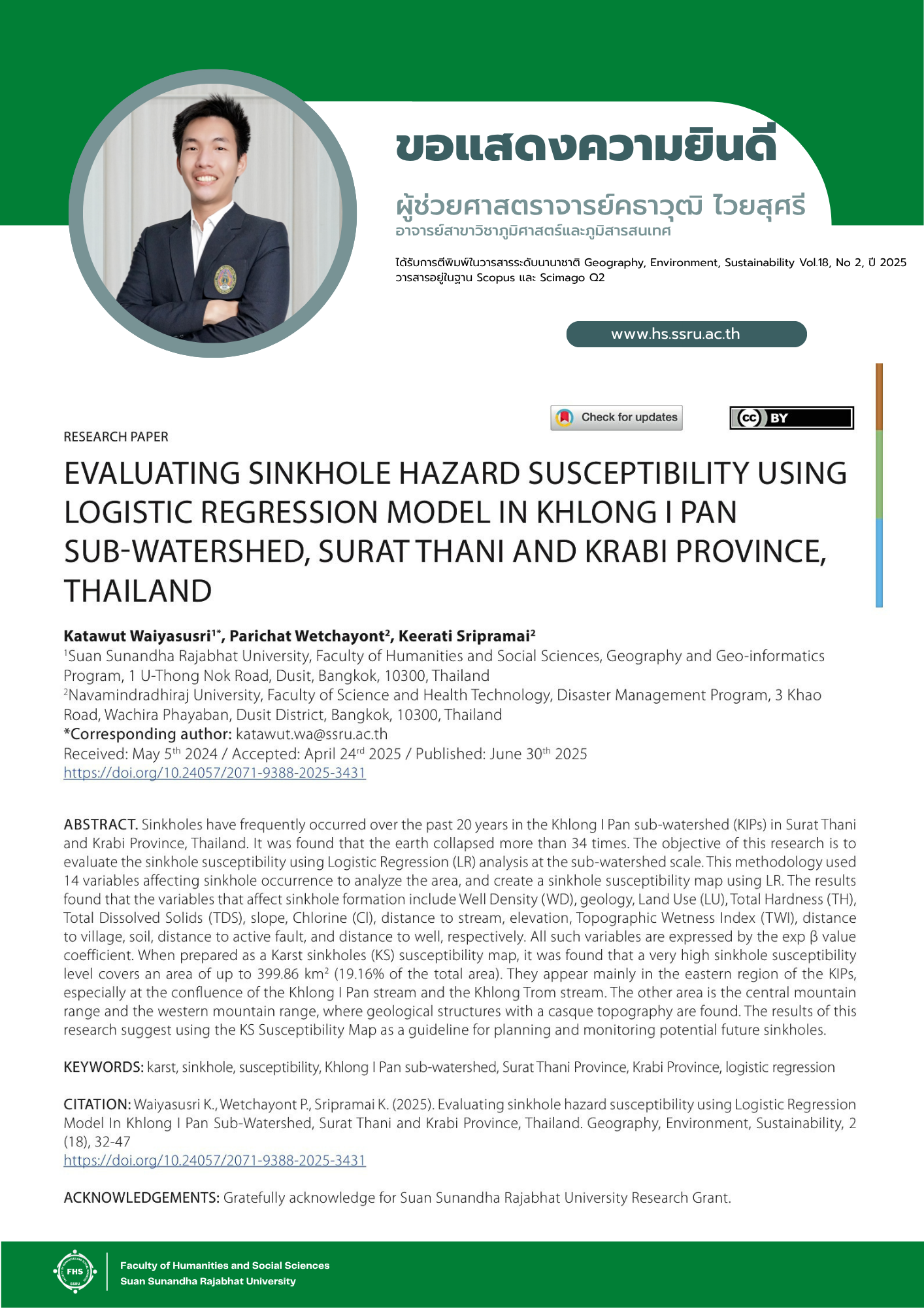 ได้รับการตีพิมพ์ในวารสารระดับนานาชาติ Geography, Environment, Sustainability Vol.18, No 2, ปี 2025
