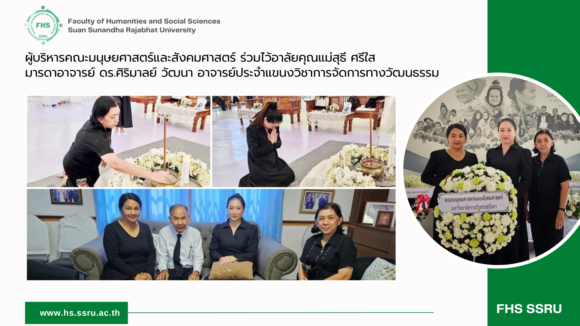 ผู้บริหารคณะมนุษยศาสตร์และสังคมศาสตร์ ร่วมไว้อาลัยคุณแม่สุธี ศรีใส มารดาอาจารย์ ดร.ศิริมาลย์ วัฒนา อาจารย์ประจำแขนงวิชาการจัดการทางวัฒนธรรม