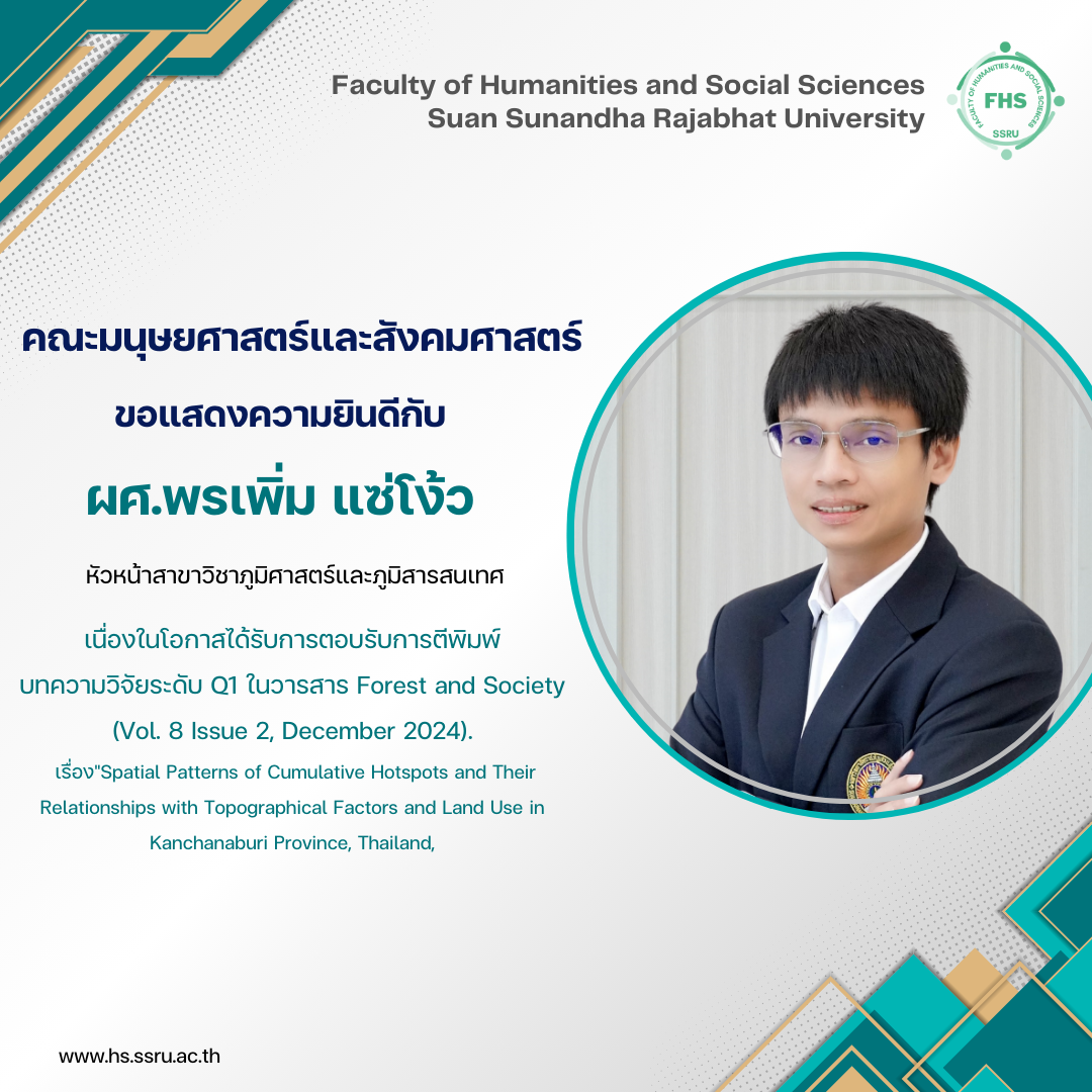 เรื่อง"Spatial Patterns of Cumulative Hotspots and Their Relationships with Topographical Factors and Land Use in Kanchanaburi Province, Thailand,"