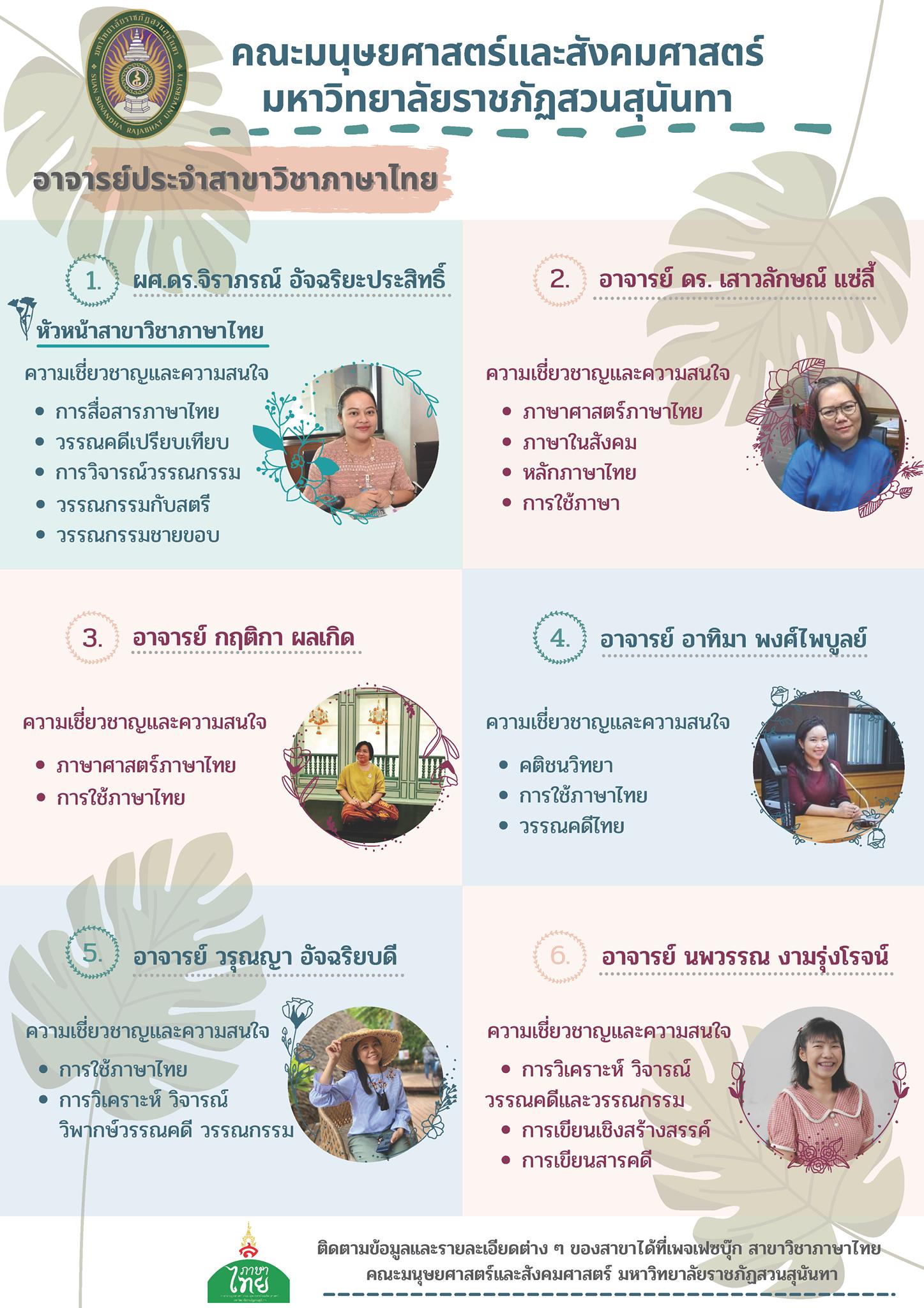 แนะนำอาจารย์ประจำสาขาวิชาภาษาไทย คณะมนุษยศาสตร์และสังคมศาสตร์
