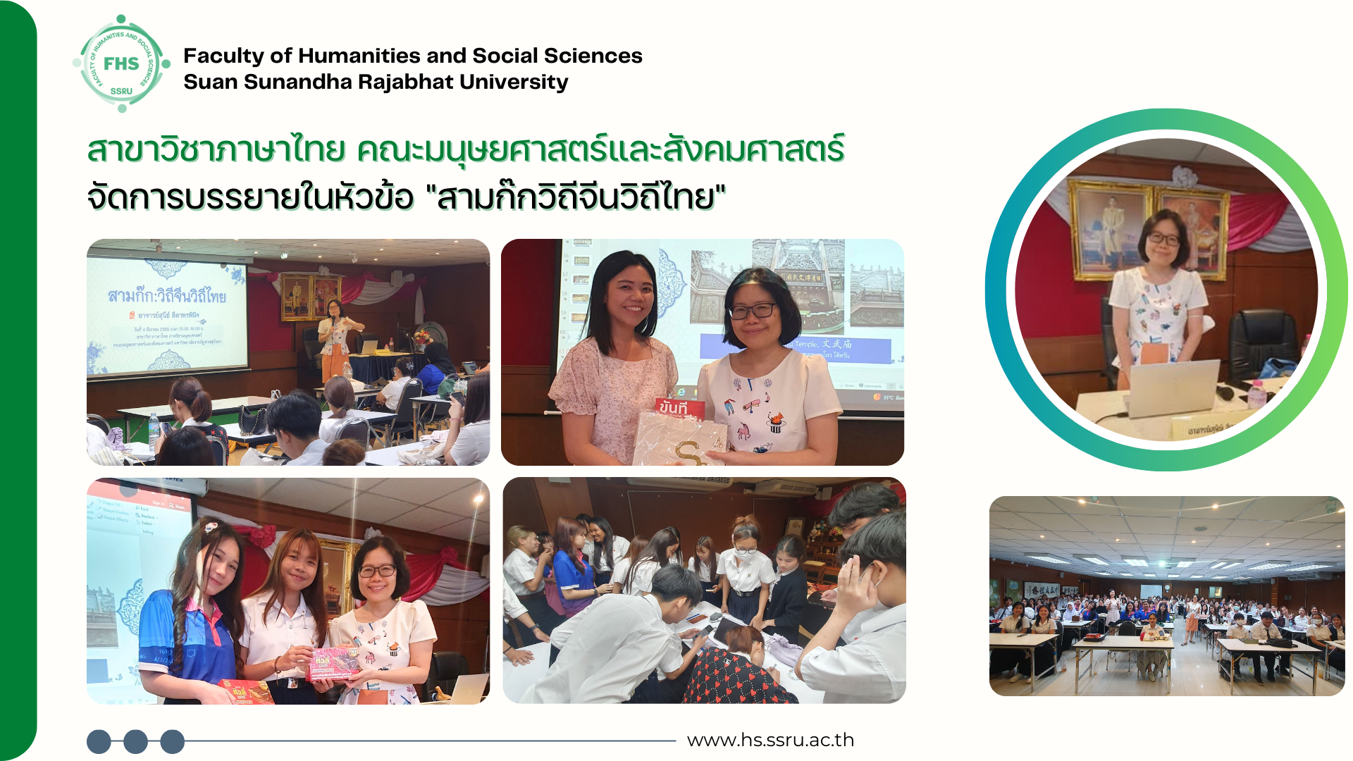 วันที่ 4 มีนาคม 2568 เวลา 13.00 - 16.00 น. สาขาวิชาภาษาไทย คณะมนุษยศาสตร์และสังคมศาสตร์ มหาวิทยาลัยราชภัฏสวนสุนันทา จัดโครงการเปิดโลกภาษาและวรรณกรรม โดยได้รับเกียรติจาก อาจารย์สุนีย์ ลีลาพรพินิจ อาจารย์ประจำศูนย์วิจัย พัฒนา และนวัตกรรม มหาวิทยาลัยธุรกิจบัณฑิตย์ เป็นวิทยากรบรรยายในหัวข้อ "สามก๊กวิถีจีนวิถีไทย" การบรรยายครั้งนี้นักศึกษาชั้นปีที่ 1 ในรายวิชาวรรณคดีเอกของไทยได้รับความรู้เกี่ยวกับวรรณกรรมเรื่องสามก๊ก ได้แก่ ความเป็นมา ประวัติการแปลสามก๊กฉบับภาษาไทย สามก๊กฉบับเจ้าพระยาพระคลัง (หน) รูปแบบคำประพันธ์ แนวคิด ความแพร่หลายของวรรณกรรมสามก๊กในประเทศไทย