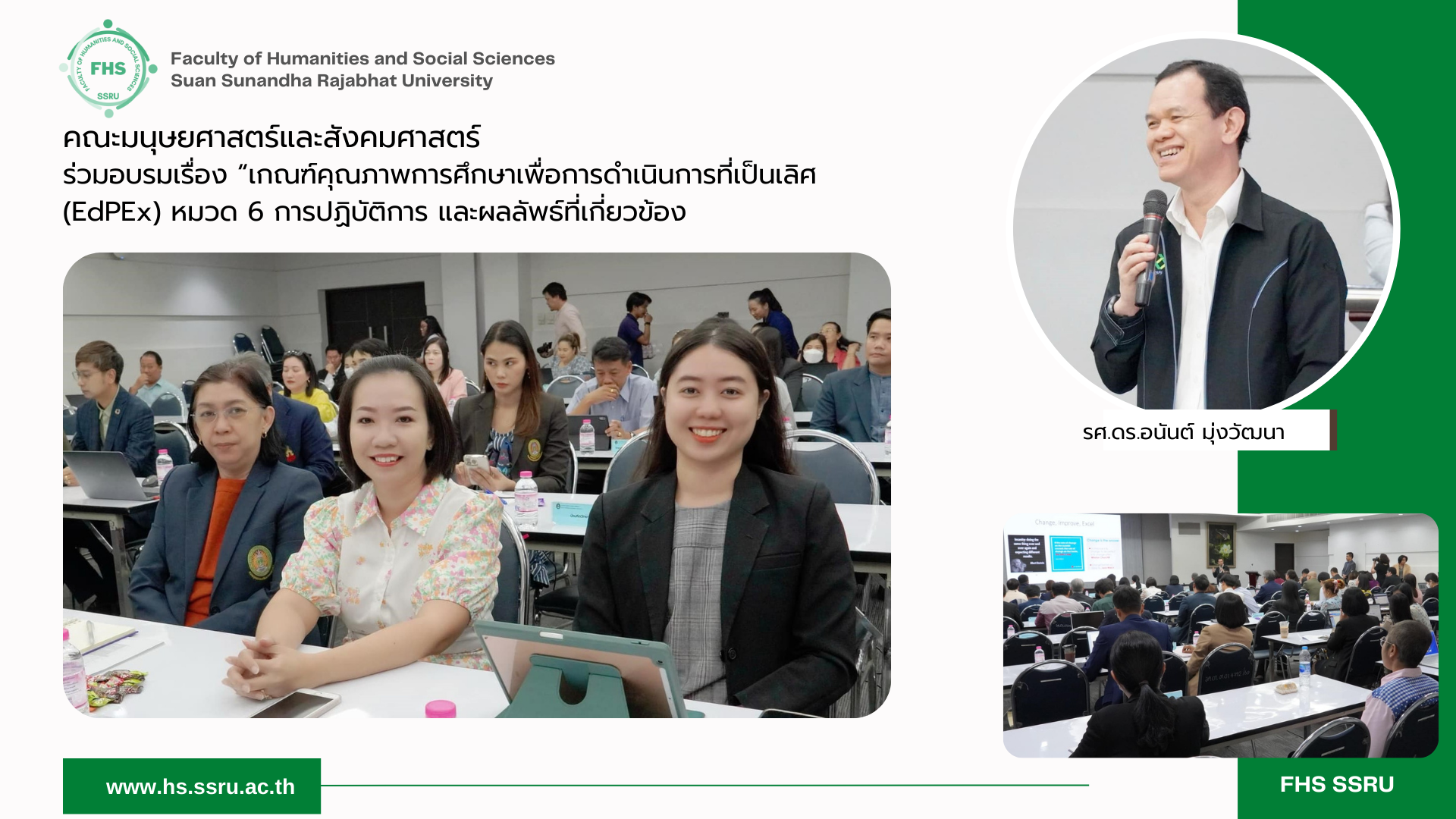 คณะมนุษยศาสตร์และสังคมศาสตร์ ร่วมอบรมเรื่อง “เกณฑ์คุณภาพการศึกษาเพื่อการดำเนินการที่เป็นเลิศ (EdPEx) หมวด 6 การปฏิบัติการ และผลลัพธ์ที่เกี่ยวข้อง