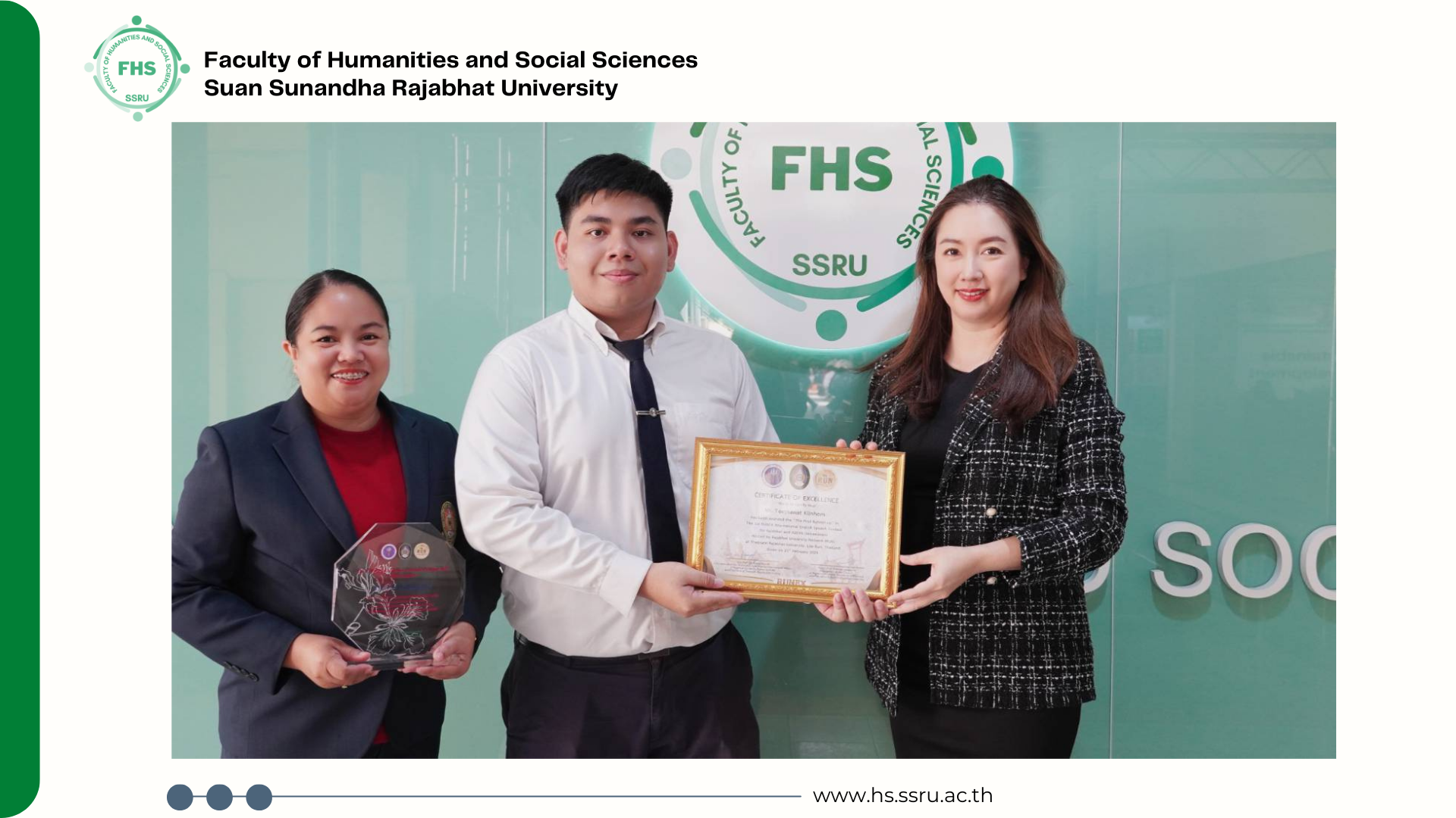 วันที่ 6 มีนาคม 2568 เวลา 11.00 น. อาจารย์ ดร.นภาศรี สุวรรณโชติ คณบดีคณะมนุษยศาสตร์และสังคมศาสตร์ ร่วมแสดงความยินดีกับ นายธีร์ธวัช กลิ่นหอม นักศึกษาสาขาวิชาภาษาอังกฤษธุรกิจ คณะมนุษยศาสตร์และสังคมศาสตร์ มหาวิทยาลัยราชภัฏสวนสุนันทา ที่ได้รับรางวัลรองชนะเลิศอันดับ 1 ในการแข่งขันสุนทรพจน์ภาษาอังกฤษประเภทเดี่ยว หัวข้อ "AI in Education: Opportunities and Challenges for Teachers and Student" รายการ 1st Rajabhat University Network Exchange 2025 ในงาน RUNEX 2025 ณ มหาวิทยาลัยราชภัฏเทพสตรี จังหวัดลพบุรี โดยมี ผู้ช่วยศาสตราจารย์ ดร.กวิน วงศ์ลีดี ผู้อำนวยการสถาบันภาษา นำนักศึกษาเข้าร่วมการแข่งขัน และอาจารย์ Charlotte Amalie Yuson เป็นผู้ฝึกซ้อมและดูแลนักศึกษาในการเข้าร่วมแข่งขันในครั้งนี้