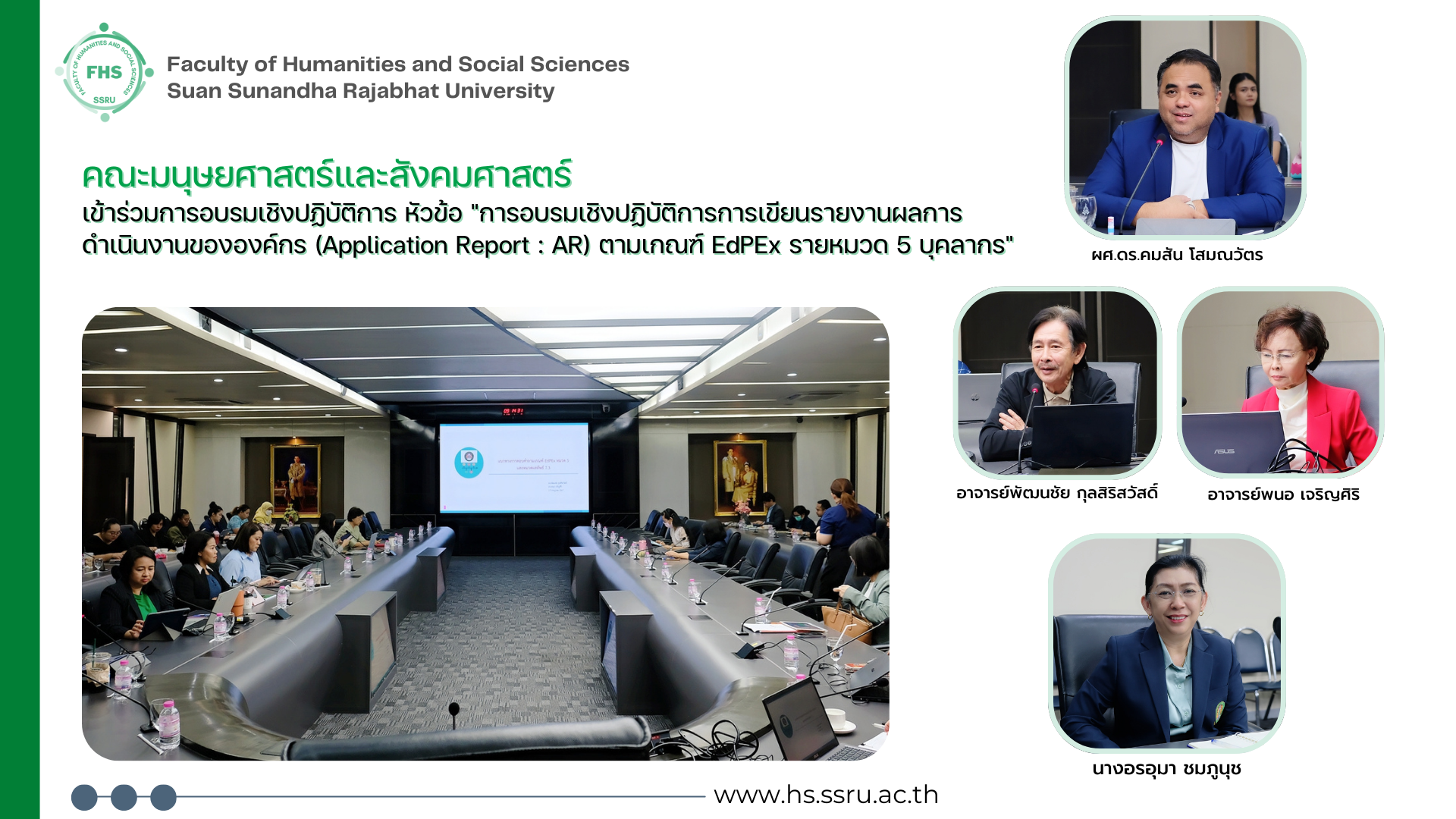 คณะมนุษยศาสตร์และสังคมศาสตร์ เข้าร่วมการอบรมเชิงปฏิบัติการ หัวข้อ "การอบรมเชิงปฏิบัติการการเขียนรายงานผลการดำเนินงานขององค์กร (Application Report : AR) ตามเกณฑ์ EdPEx รายหมวด 5 บุคลากร"