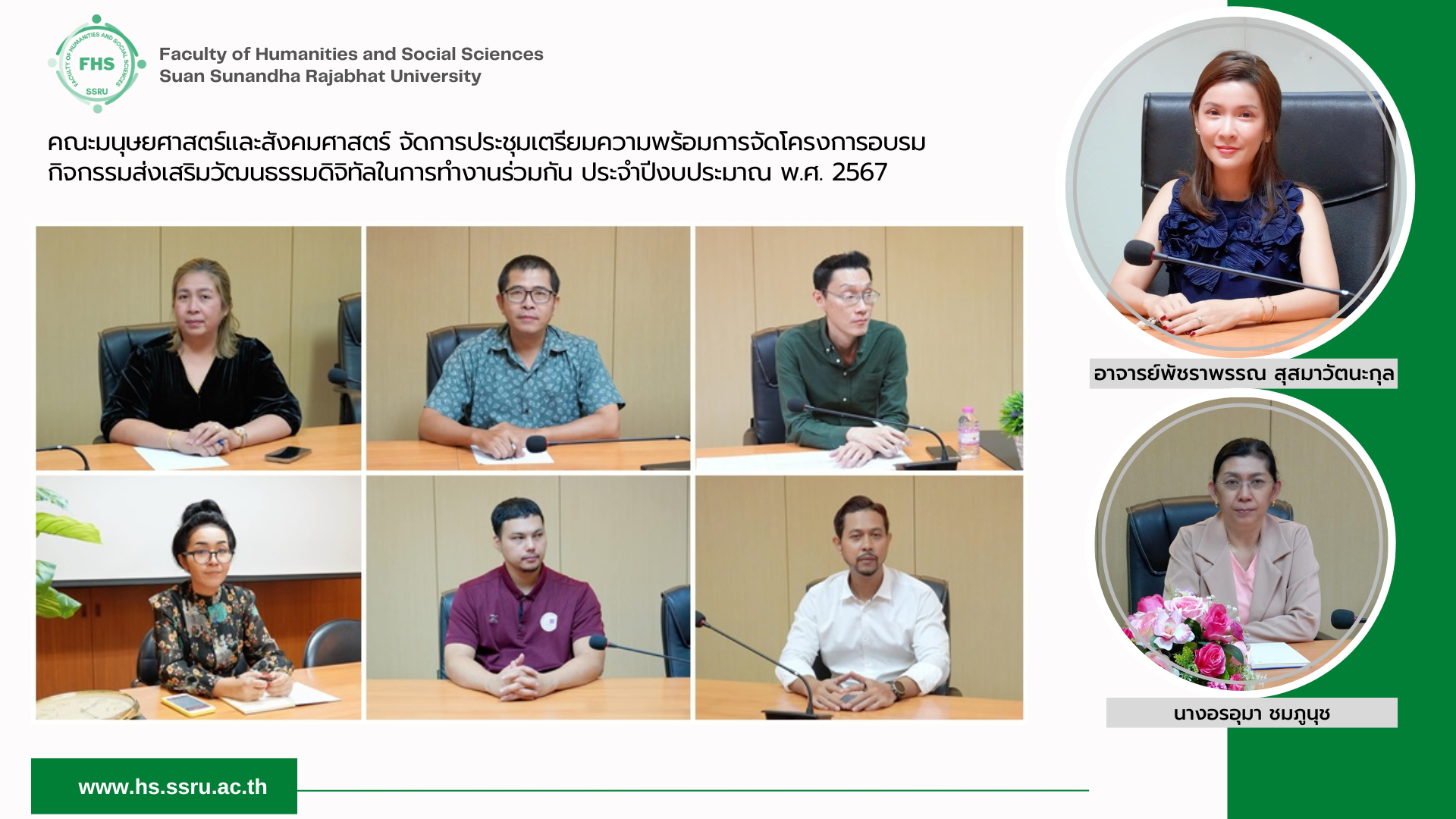 คณะมนุษยศาสตร์และสังคมศาสตร์ จัดการประชุมเตรียมความพร้อม การจัดโครงการอบรมกิจกรรมส่งเสริมวัฒนธรรมดิจิทัลในการทำงานร่วมกัน ประจำปีงบประมาณ พ.ศ. 2567