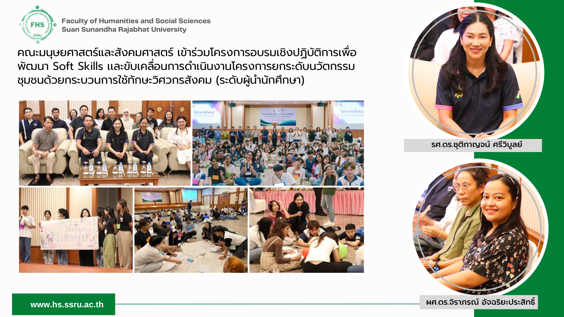คณะมนุษยศาสตร์เเละสังคมศาสตร์ เข้าร่วมโครงการอบรมเชิงปฏิบัติการเพื่อพัฒนา Soft Skills โดยใช้ทักษะวิศวกรสังคม (ระดับผู้นำนักศึกษา)