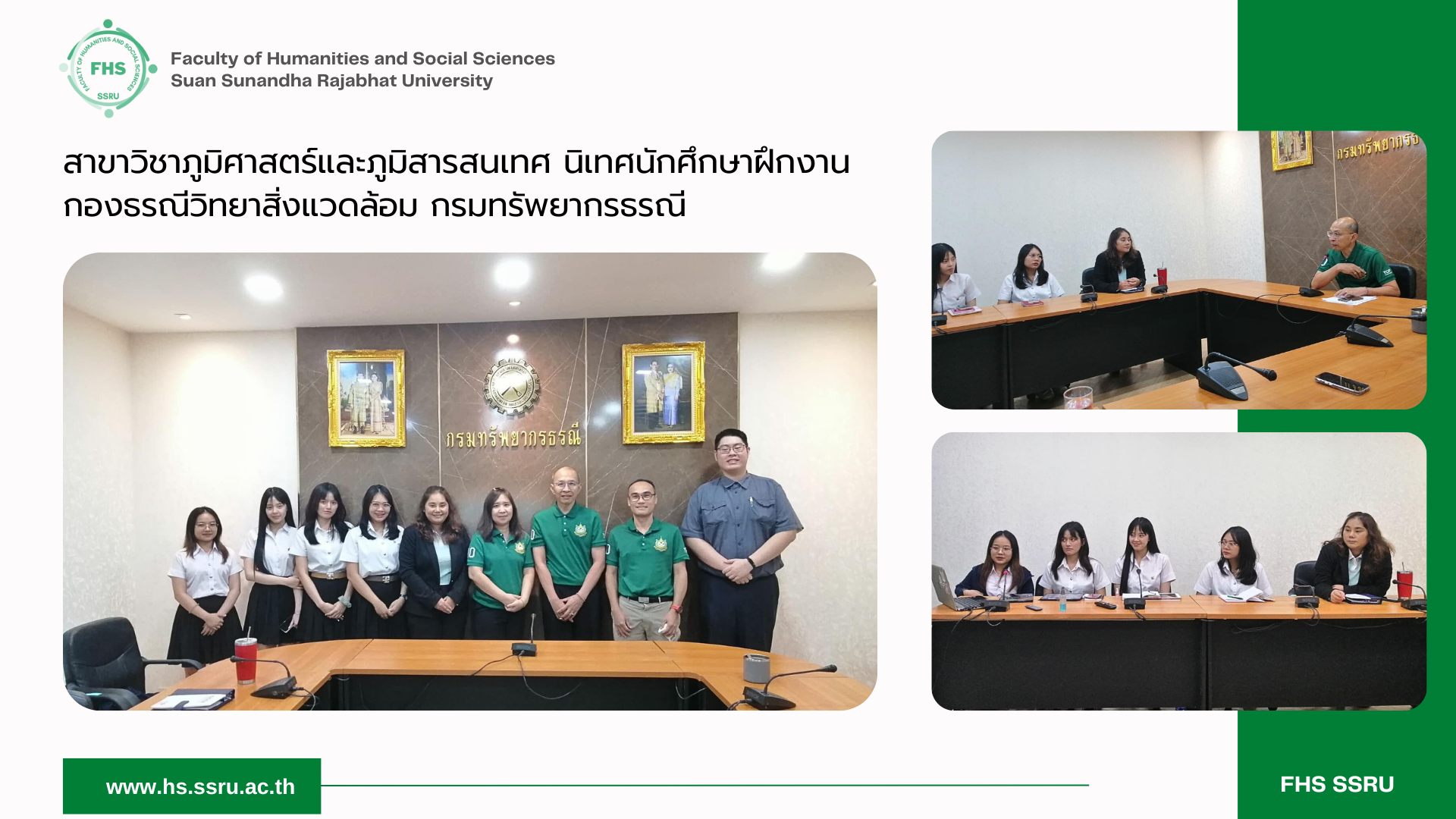 วันที่ 6 มีนาคม 2567 อาจารย์ภัทรพงศ์ งานสกุล อาจารย์ประจำสาขาวิชาภูมิศาสตร์และภูมิสารสนเทศ คณะมนุษยศาสตร์และสังศาสตร์ มหาวิทยาลัยราชภัฏสวนสุนันทา ได้ออกนิเทศนักศึกษาชั้นปีที่ 4 ของหลักสูตรฯ ที่ได้เข้ารับการฝึกประสบการณ์วิชาชีพ ณ กองธรณีวิทยาสิ่งแวดล้อม กรมทรัพยากรธรณี โดยมี น.ส.ปฑิตตา สังข์ทองคำ น.ส.ปิยะธิดา สระแสง น.ส.อัญชิสา จรัสเรืองอุทัย และ น.ส.ปิ่นทิพย์ ทองถนอม อยู่ให้การต้อนรับเป็นอย่างดี